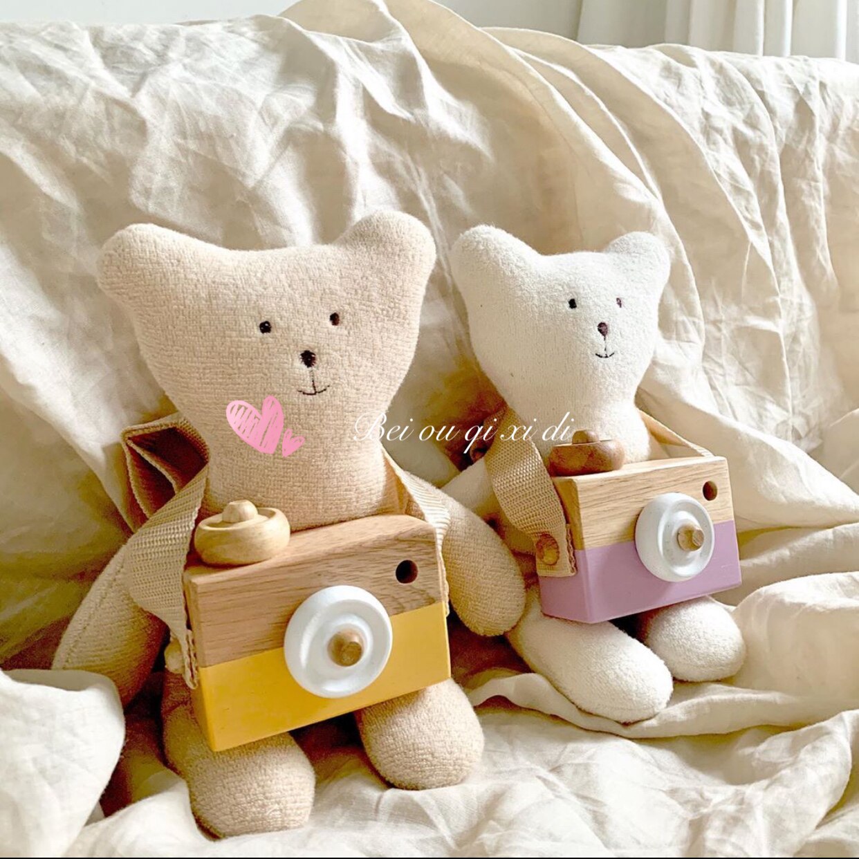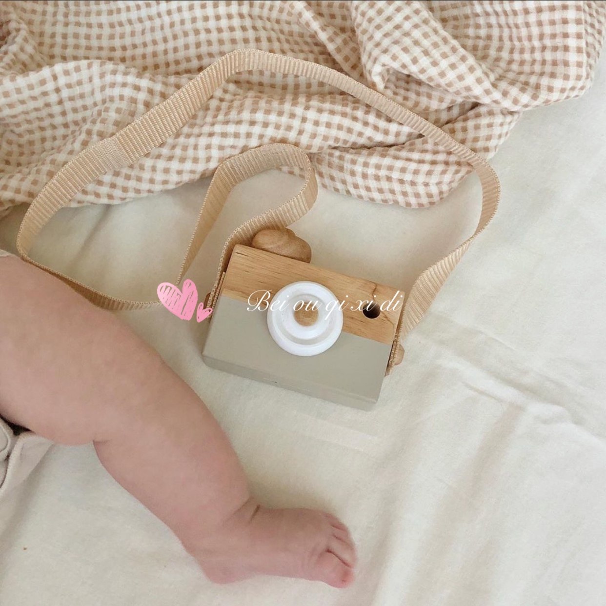 ins Korean wooden camera ornaments Children's photography props toys Cute home decoration pendant simple