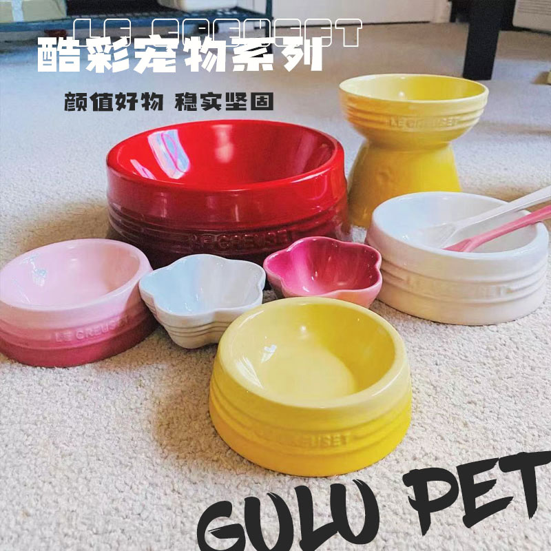 Cool color Le Creuset pet ceramic bowl for prevention of black underdog puppies Cat Bowls rice bowls Spot spot