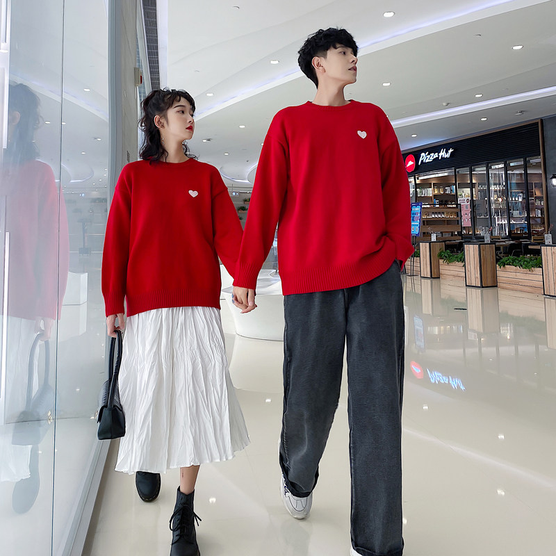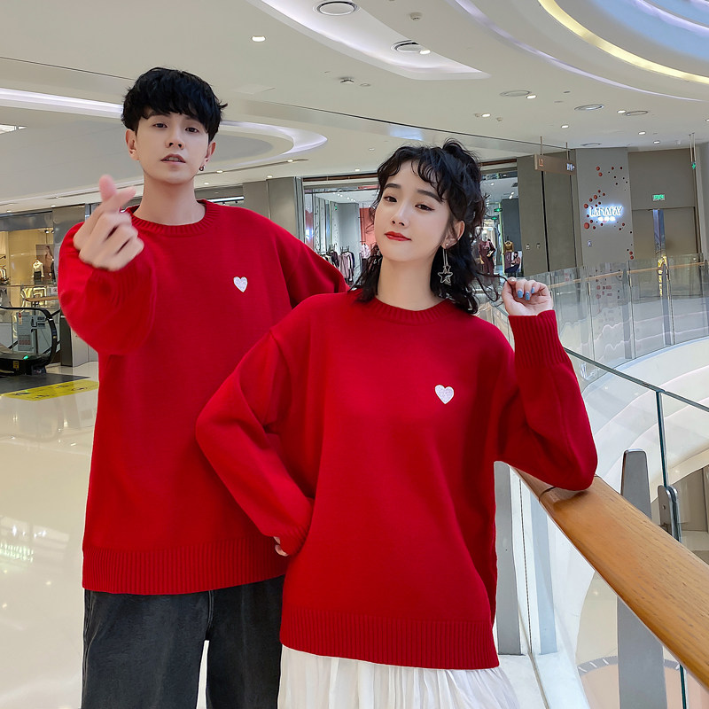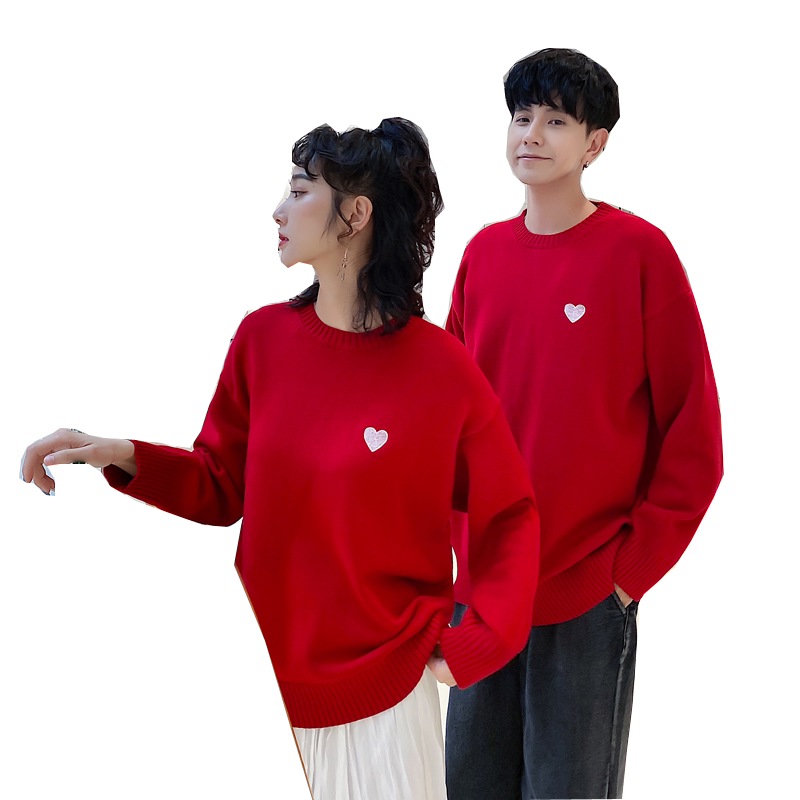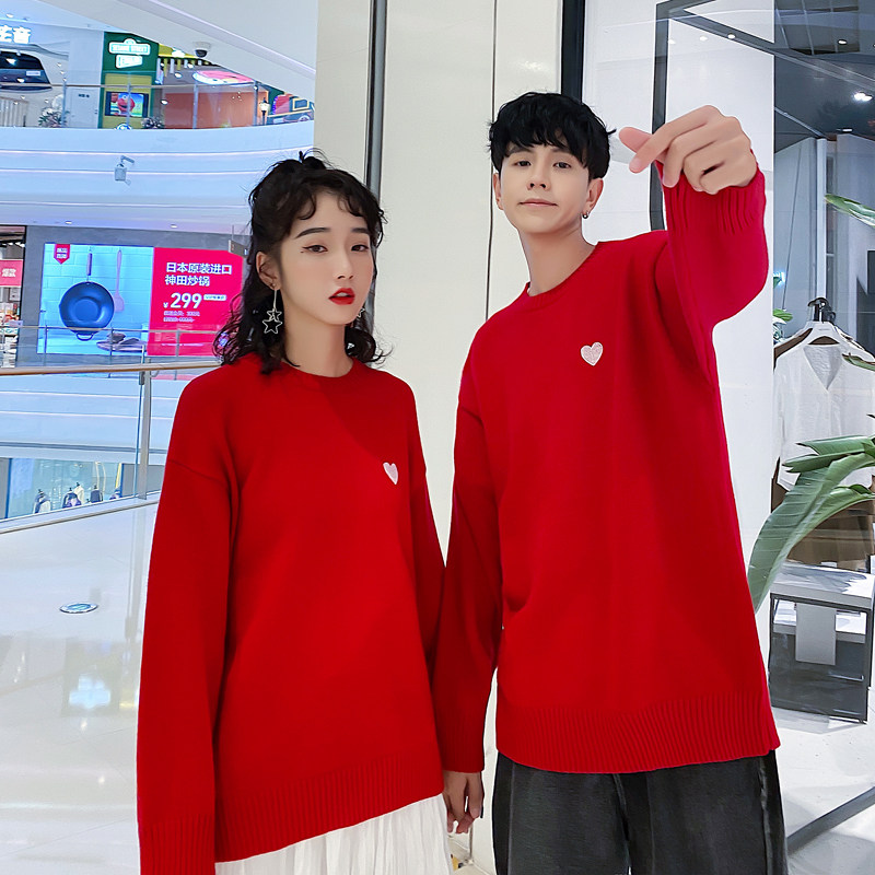 Chinese New Year Lovers Dress New Year Sweater Women's Autumn Winter New Han Prints LOOSE RED TREKHEAD KNITWEAR JACKET TIDE