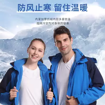 Outdoor jacket custom LOGO women two-piece three-in-one detachable plus velvet padded custom mountaineering suit men