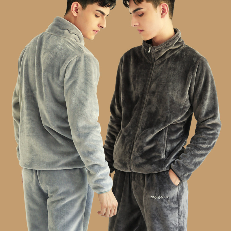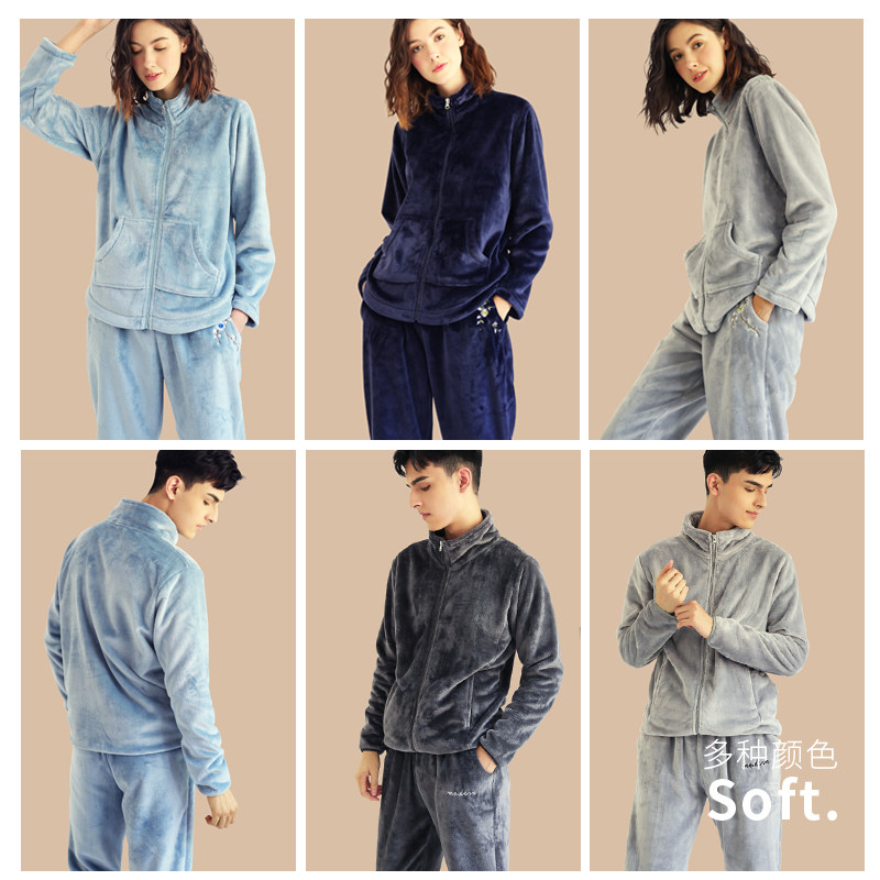 2021 new autumn and winter thickened and gushed coral suede male and female sleepwear flannel lovers winter upscale suit