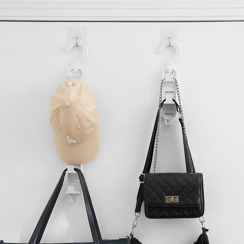 Home Multifunction Bag Wrap Swivel Rack Wardrobe Creative Plastic Spike-Free Hook Hung Tie Containing Layer Rack Hanging Hook