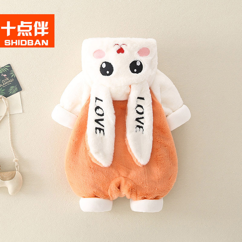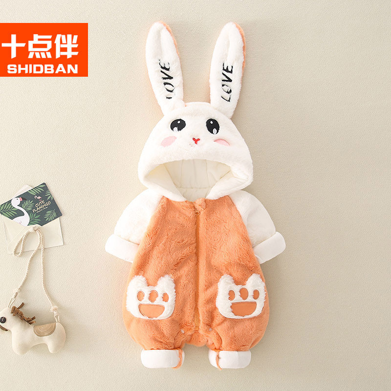 Baby winter clothes with hat thick male and female babies out to hug clothes full moon newborn jumper sweater winter