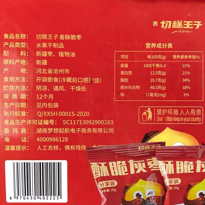 Cut cake prince crispy gray jujube 220g seedless no additive drying whole box of Xinjiang red jujube snacks gah crisp winter dates