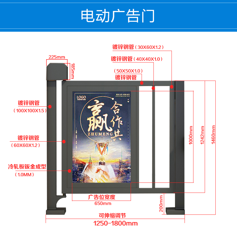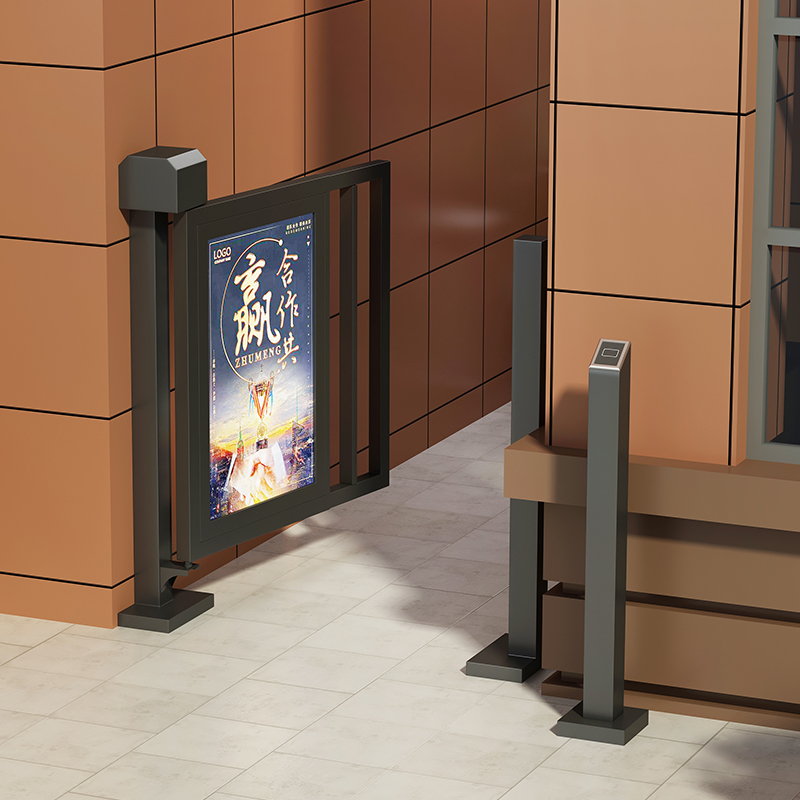 Type B standard electric advertising gate Type B standard electric fence gate card swiping column (excluding access control equipment) dynamic face recognition with column metal exit button A type economical electric advertising door