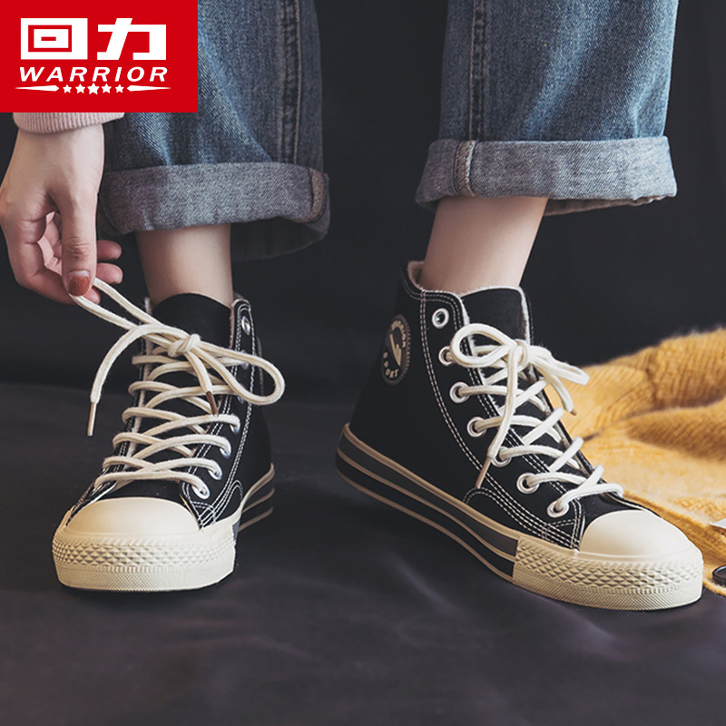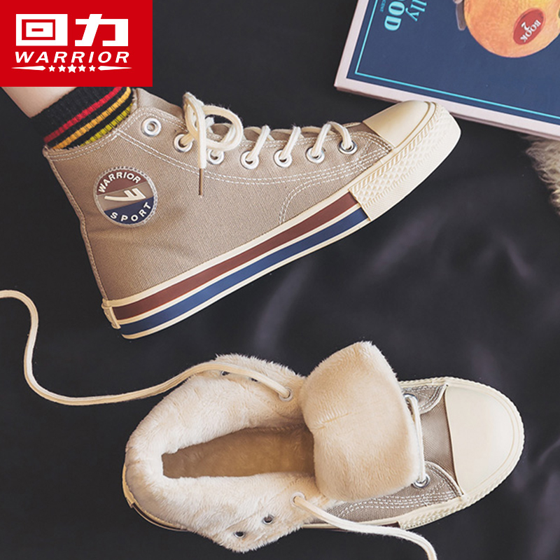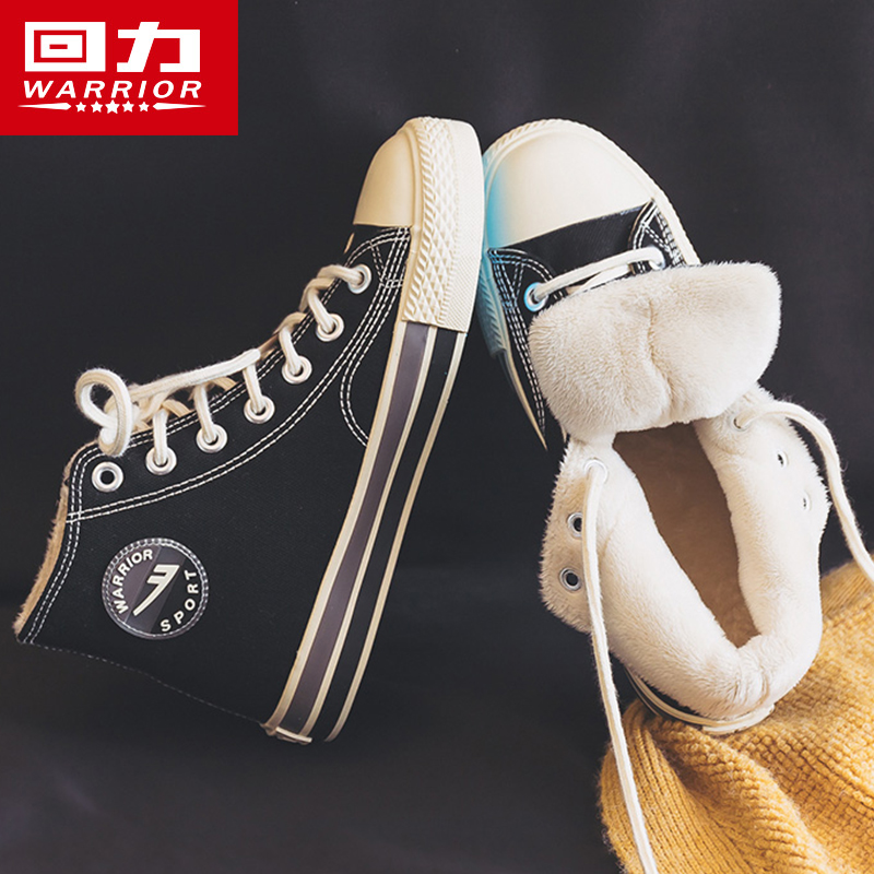 Back Force Plus Velvet Canvas Shoes Women Winter Students 100 Hitch 2021 Autumn Winter New Two Cotton Shoes Woman Winter Warm High Drum Shoes