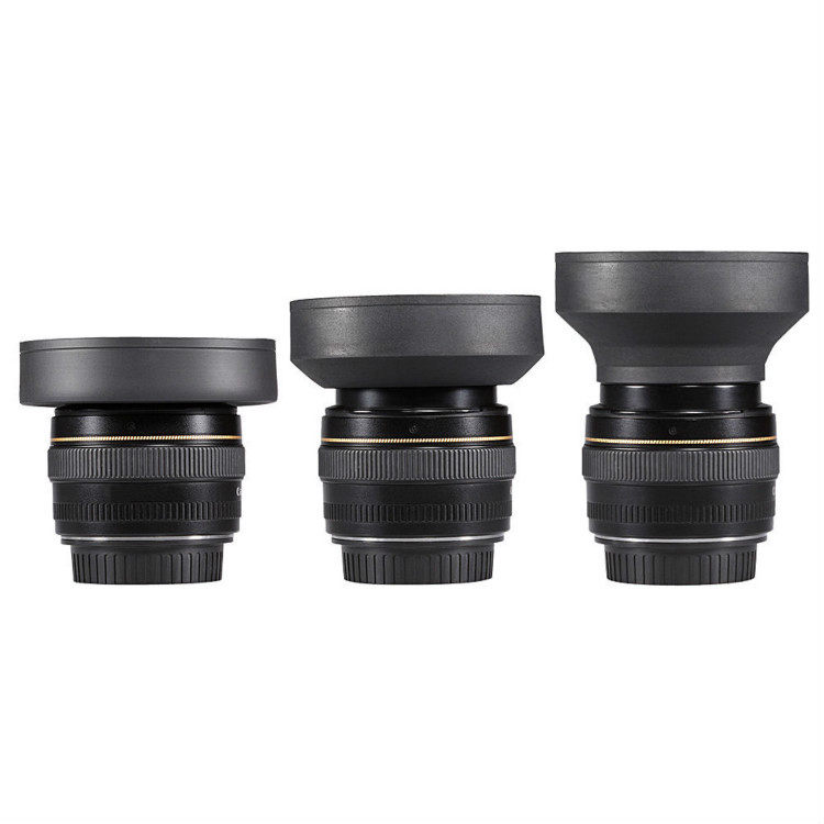 Three-use hood 49 52 55 58 62 67 72 77mm wide-angle telephoto universal soft plastic hood