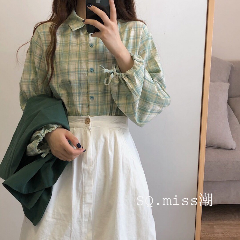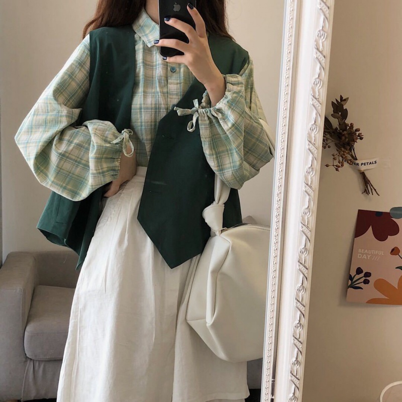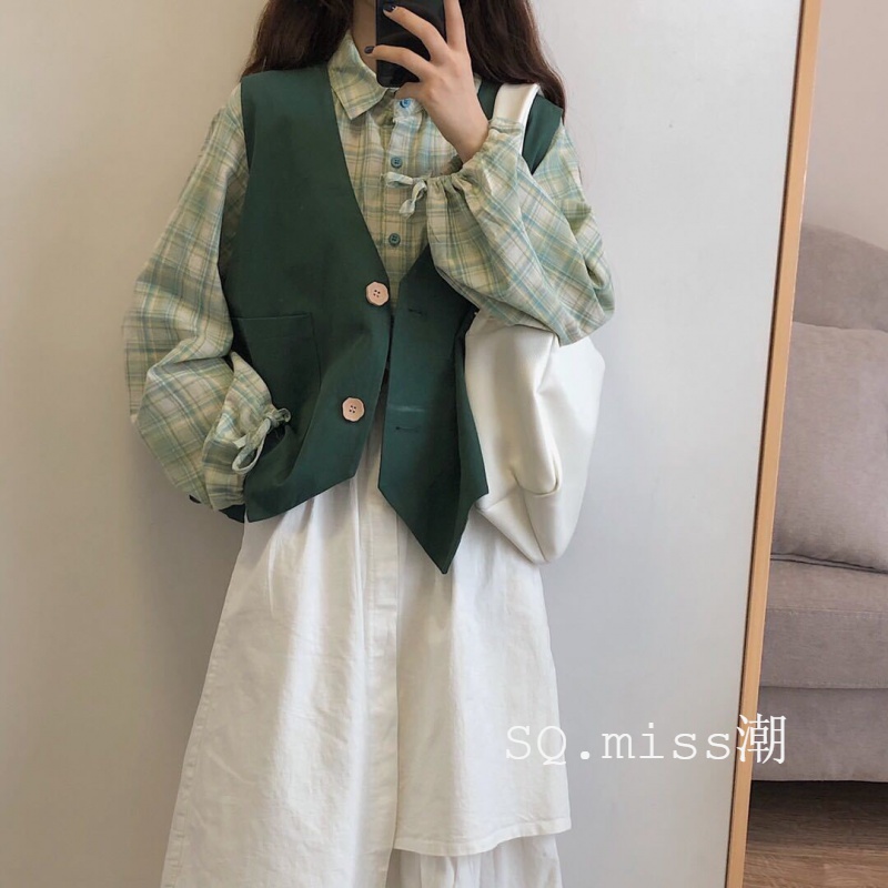 Single suit autumn Korean version loose female student long-sleeved plaid shirt tooling vest a word skirt three-piece set