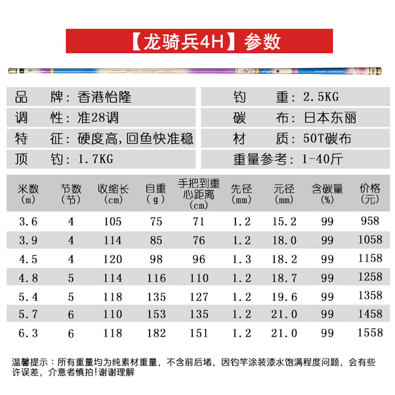 Hong Kong Yilong Dragoon 4H black pit competitive platform fishing rod 28 tune ultra-light and hard imported carbon fishing rod hand rod