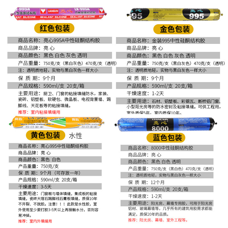 (Active model) Shengquan 995 structural glue white (warranty 10 years) caulking special - white whole box (warranty 10 years) caulking special - black whole box (warranty 10 years) indoor bonding - white whole box (warranty 10 years) indoor bonding - black whole box (warranty 10 years) indoor bonding - gray whole box (warranty 10 years) indoor bonding - transparent whole box (indoor and outdoor engineering) strong weather resistance - white (indoor and outdoor engineering) strong weather resistance - black (indoor and outdoor engineering) strong weather resistance - gray (indoor and outdoor engineering) Strong weather resistance - transparent (warranty of 10 years) engineering special - white whole box (warranty of 10 years) engineering special - black full box (warranty of 10 years) engineering special - gray whole box (warranty of 20 years) curtain wall sun room with white (warranty of 20 years) curtain wall sun room with black (warranty of 20 years) curtain wall sun room with gray (warranty of 20 years) curtain wall sun room with transparent