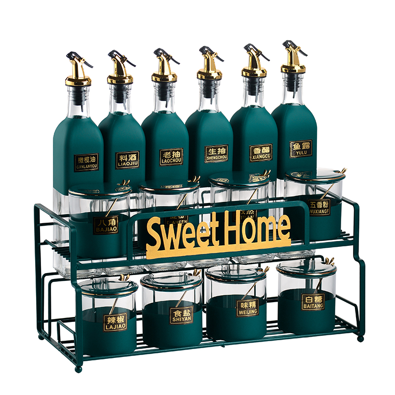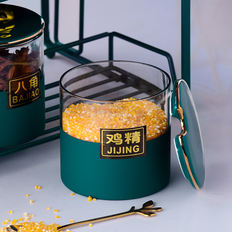 High-value kitchen glass seasoning box set household seasoning oil salt sauce vinegar seasoning combination storage box
