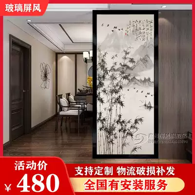 Explosion-proof ceiling art glass living room tempered frosted double-sided translucent screen TV entrance background to map customization