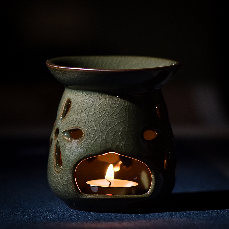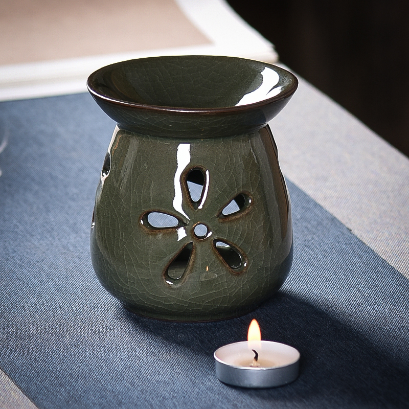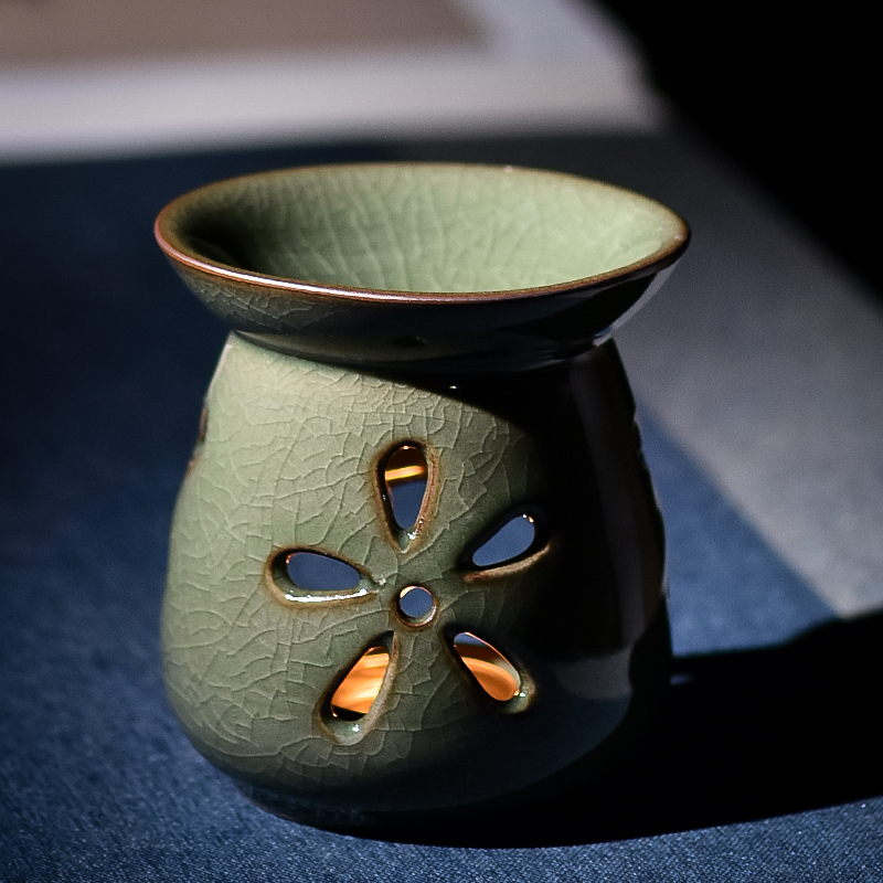 Incense Light Candle Heating Essential Oil Stove Home Indoor Bedroom Creative Hand Ceramic Iron Tire Ice Cracked Lavender Add