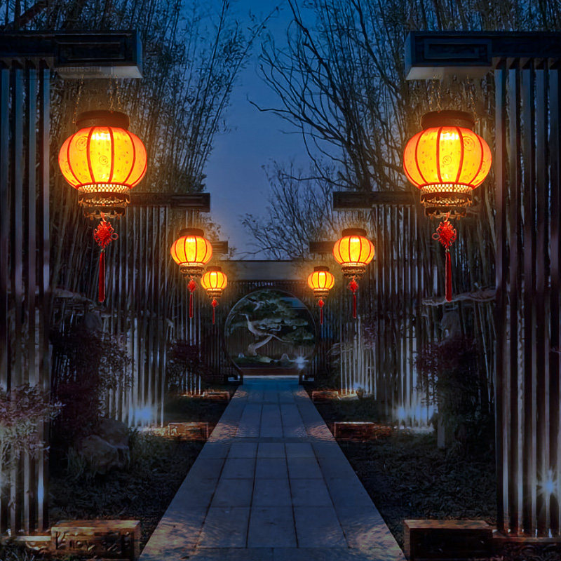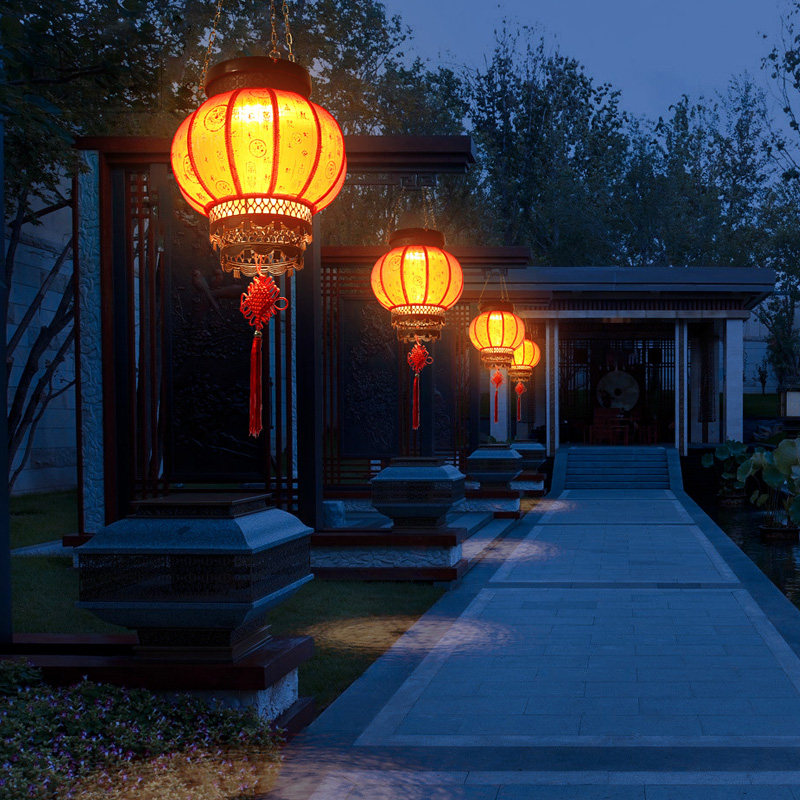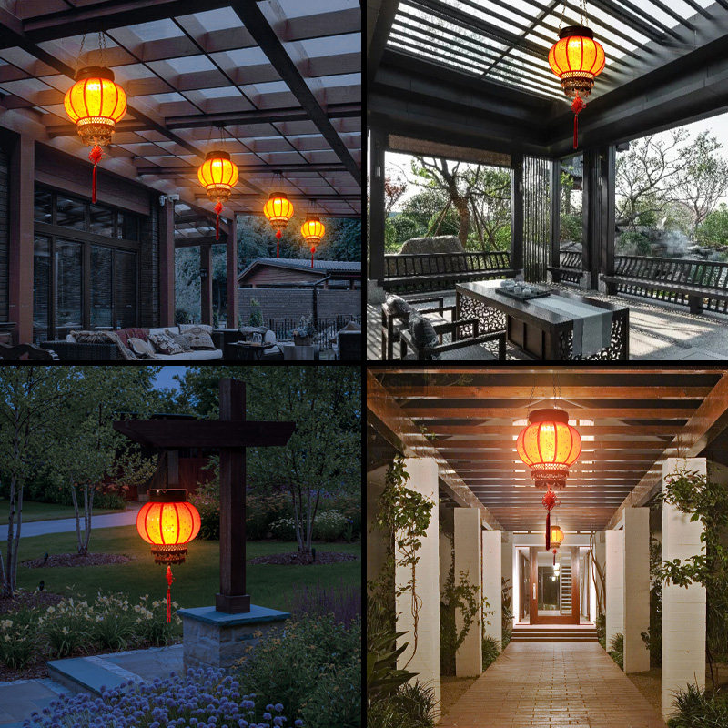 Solar Red Lantern Lamp Chandelier Outdoor Waterproof Festival Light Chinese Lantern Pastoral Chinese style Red Lantern