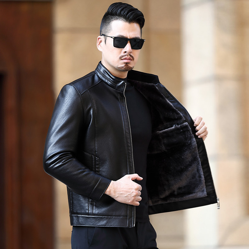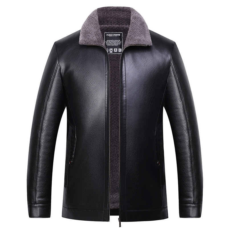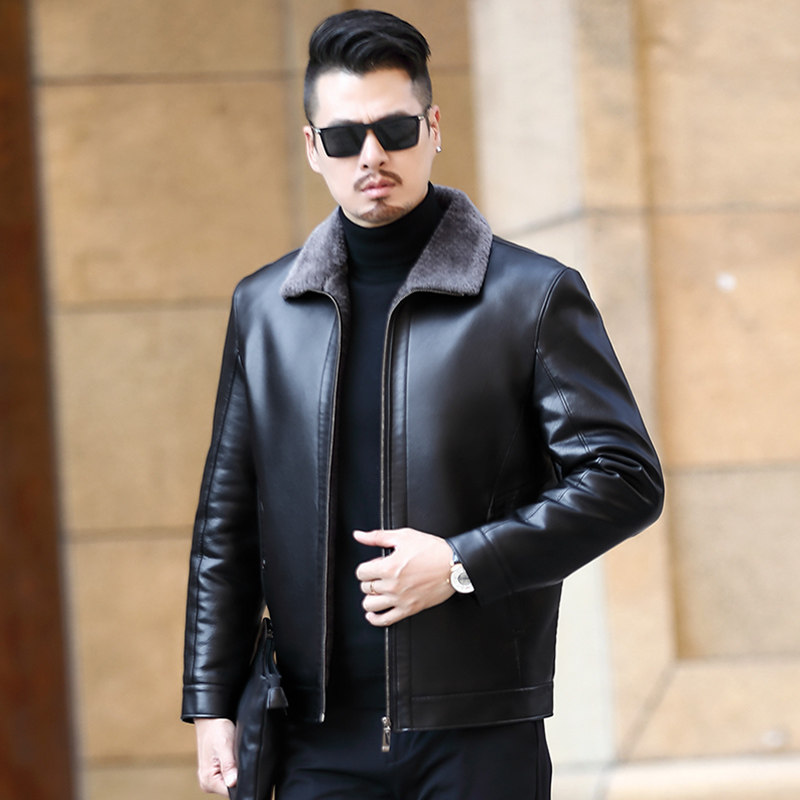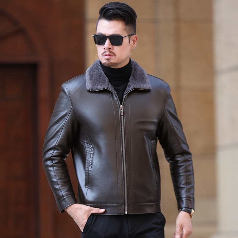 Woodpecker Leather Fur Integrated Men Genuine Leather Clothing Daddy Coats Thickened Gapped Sheep Leather Jacket Middle-aged Winter