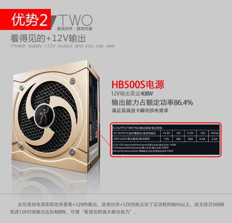 TSA Gaming Partner Rated Power 500W Module Power Battle King Hunting Blade HB500 Brand New Color Box Dress