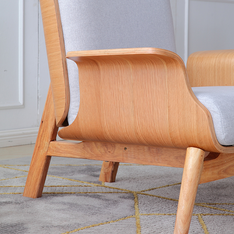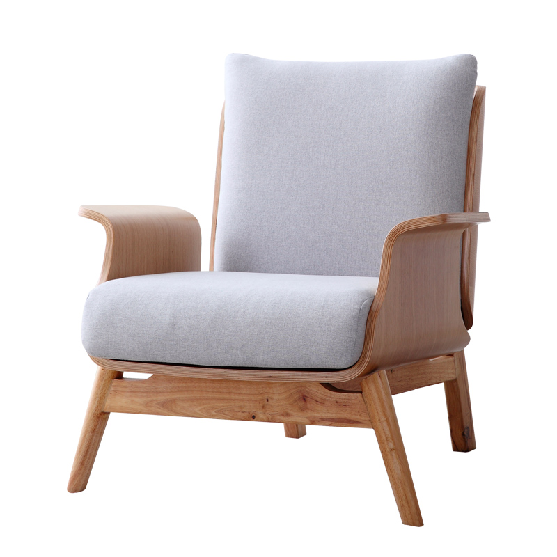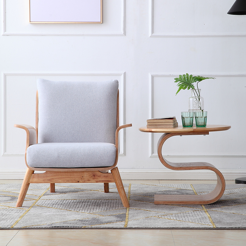 Nordic single sofa chair home simple living room fabric balcony leisure chair solid wood armrest book chair back chair