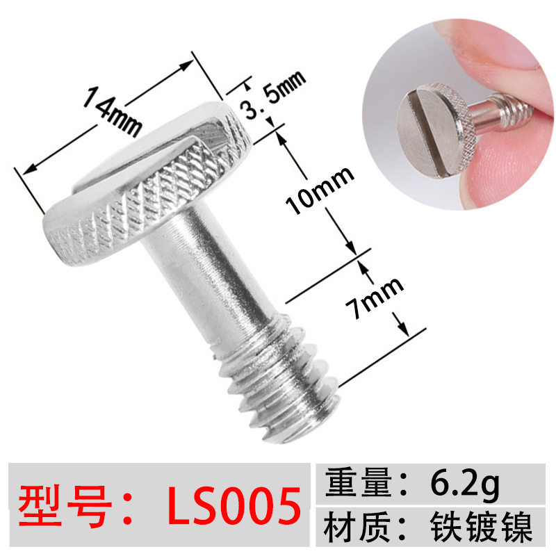Iron nickel-plated 1 4 inch screw one-word slot hand screw camera pan-tilt tripod quick-release plate screw