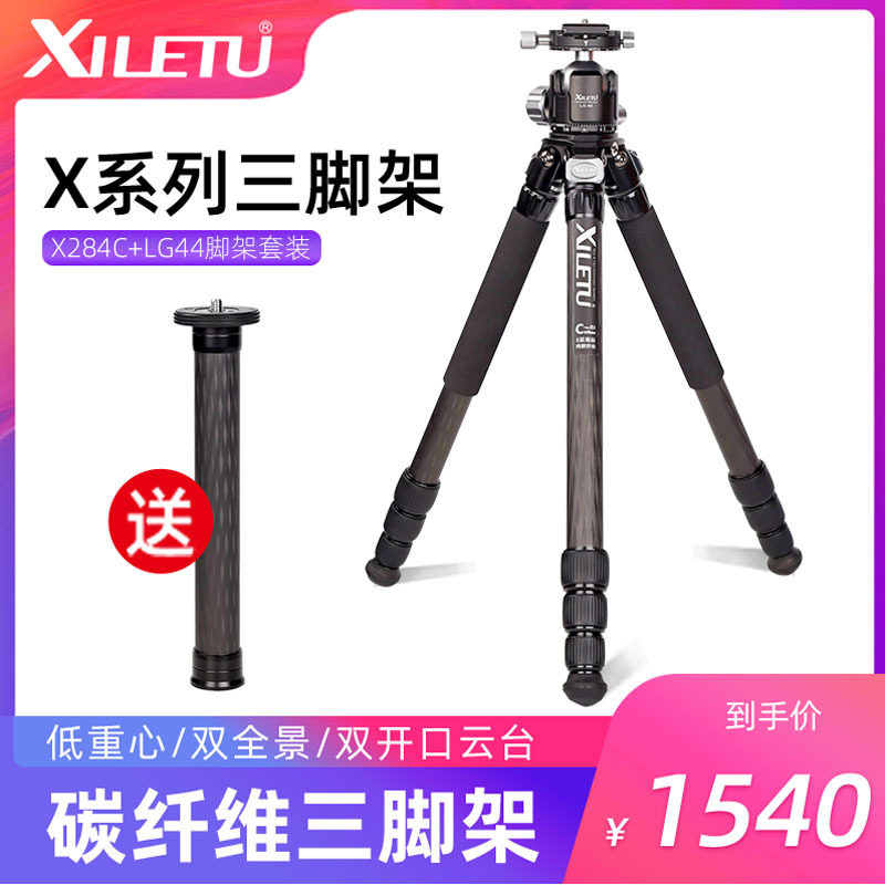 Xiletu X284C LG44 portable no-axis photography camera carbon fiber tripod low center of gravity head set