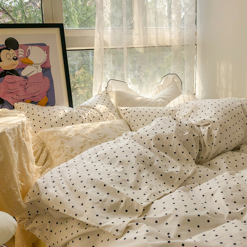 South Korean small wave spot cute milky fragrant four pieces of full cotton pure cotton quilt cover bed linen bed 1 5 1 8 m
