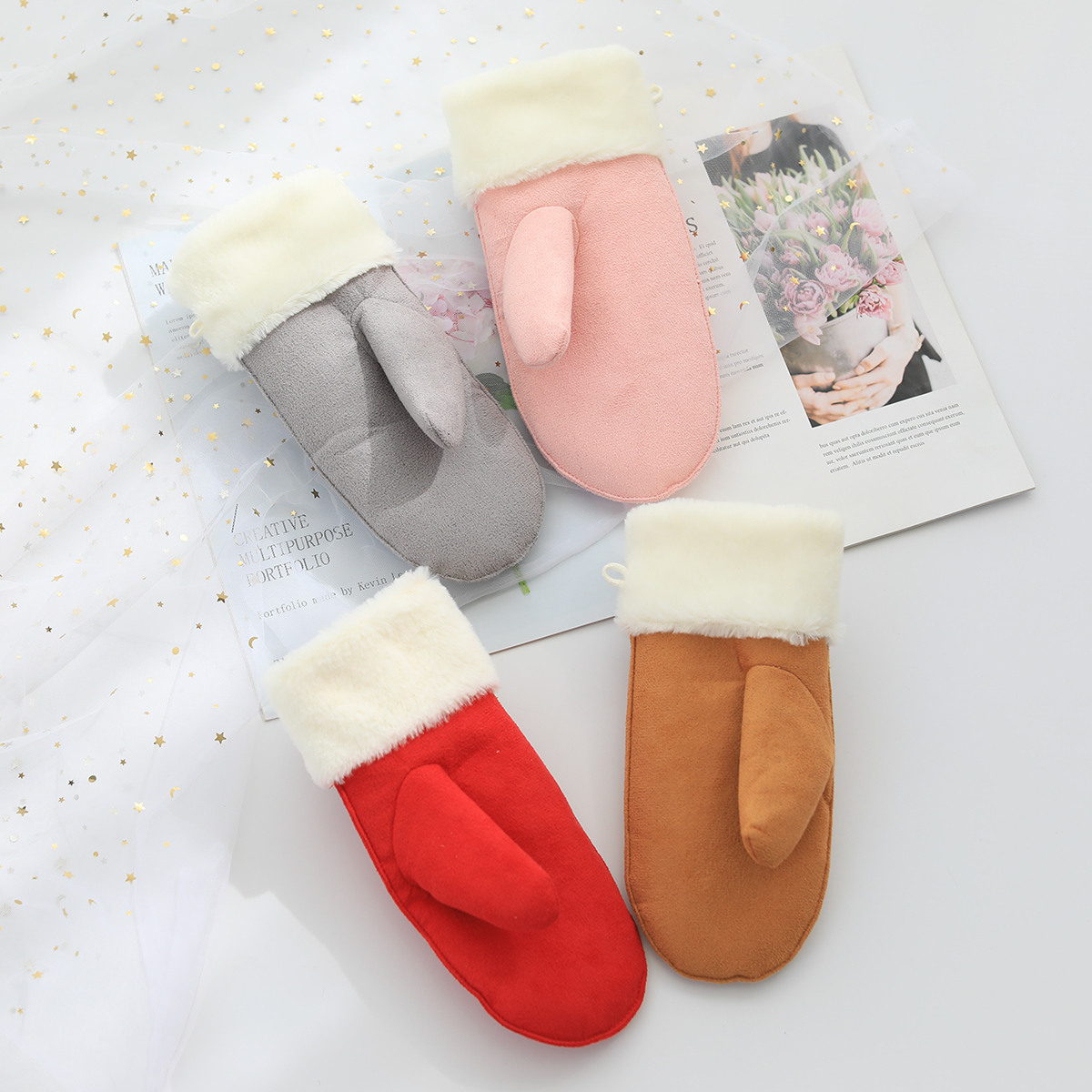 Gloves Women Winter Cute Touch Screen Warm Plus Suede Thickened Imitation Suede Gloves Students Ride Electric Cars Autumn And Chill