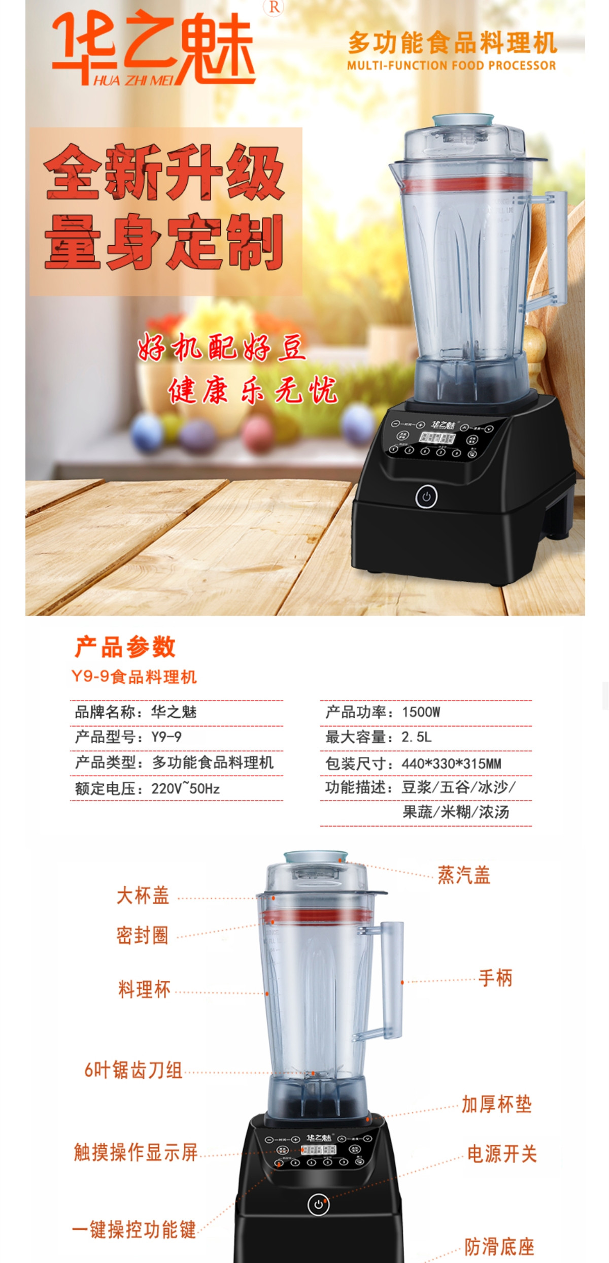 Huazhimei wall-breaking machine soymilk machine fiber Jiale full nutrition organic soybean hotel household