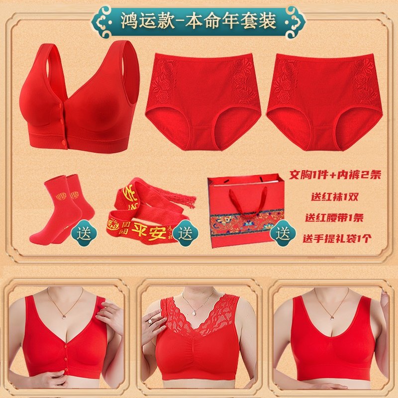 This year's big red bra mother underwear women without steel ring front buckle large size middle-aged bra is tiger suit