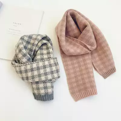 Korean children's scarf autumn and winter boys and girls baby baby warm knitted plaid wool scarf Korean tide