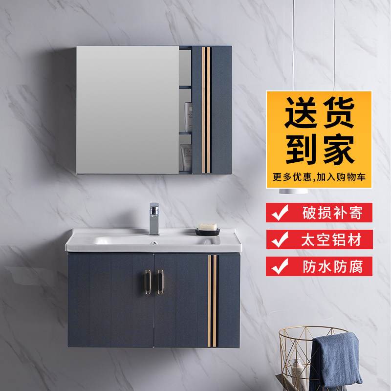 Space Aluminum Light Lavish Bath Room Cabinet Composition Small Family type Makeup Room Wash Washbasin Washbasin Washbasin Wall-mounted Hanging Cabinet