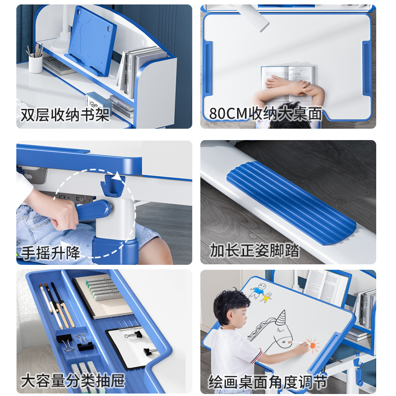 U9 Xueba Blue Hand-crank lifting - positive posture pedal - heightened bookshelf - lithium battery touch light
