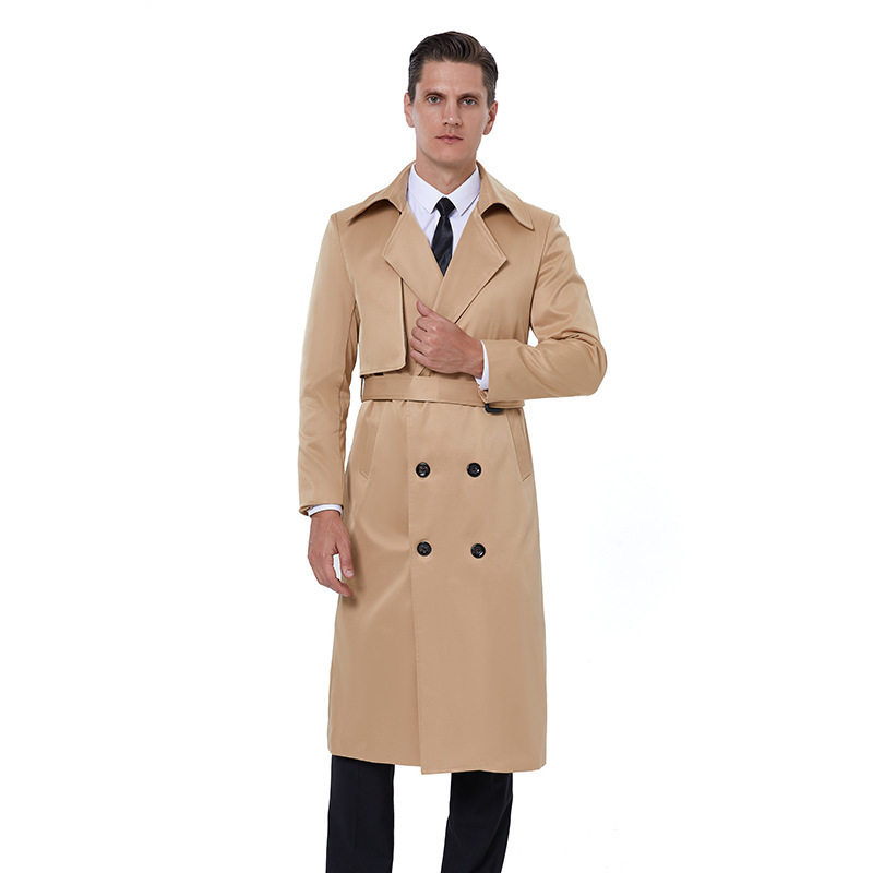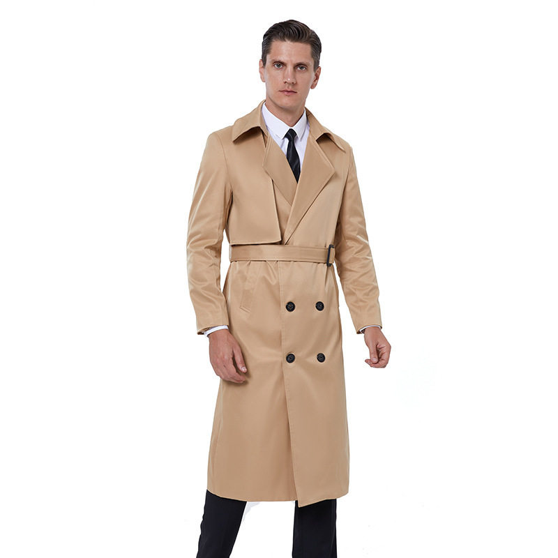 Fat windshield man fattening plus size over knee-length version handsome coat loose big size double row buckle British coat