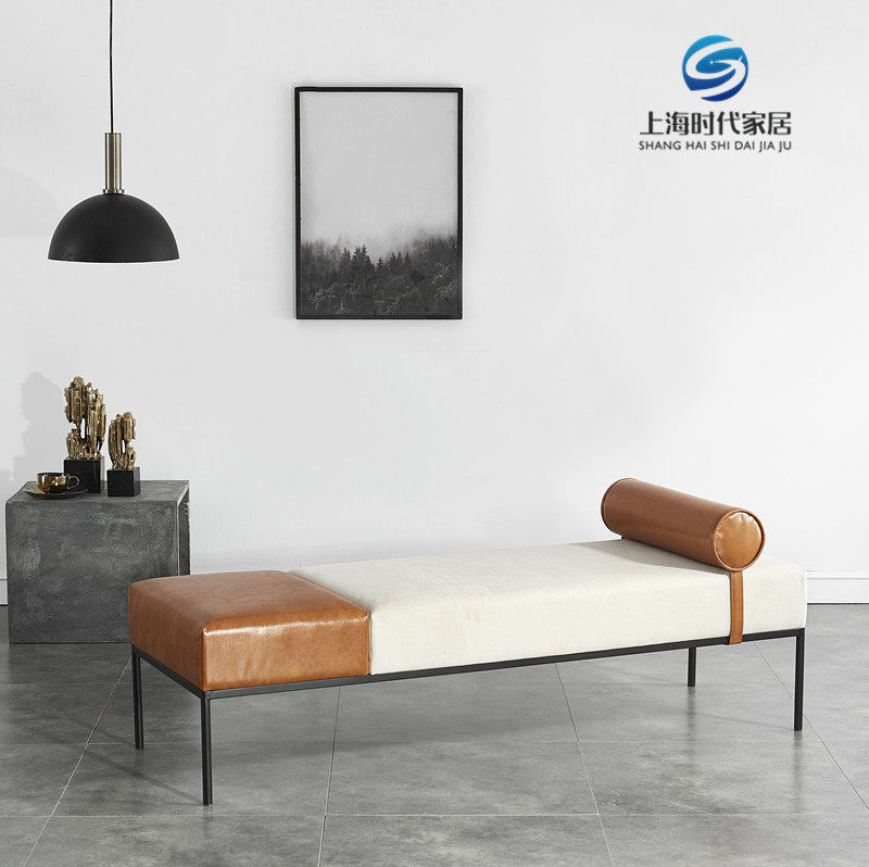 Nordic light luxury bedroom bed end stool white luxury shoe changing stool modern minimalist small apartment living room sofa long reclining chair