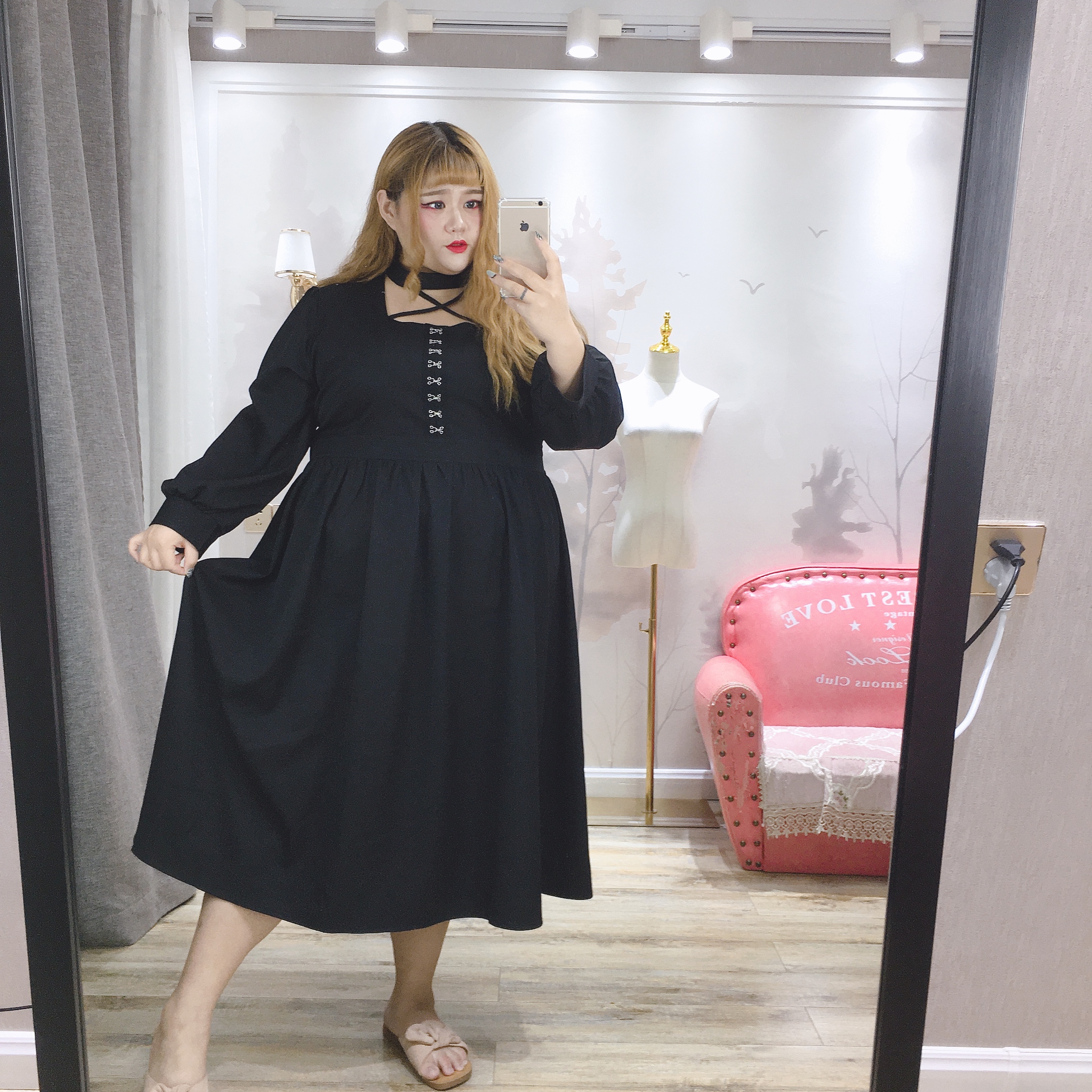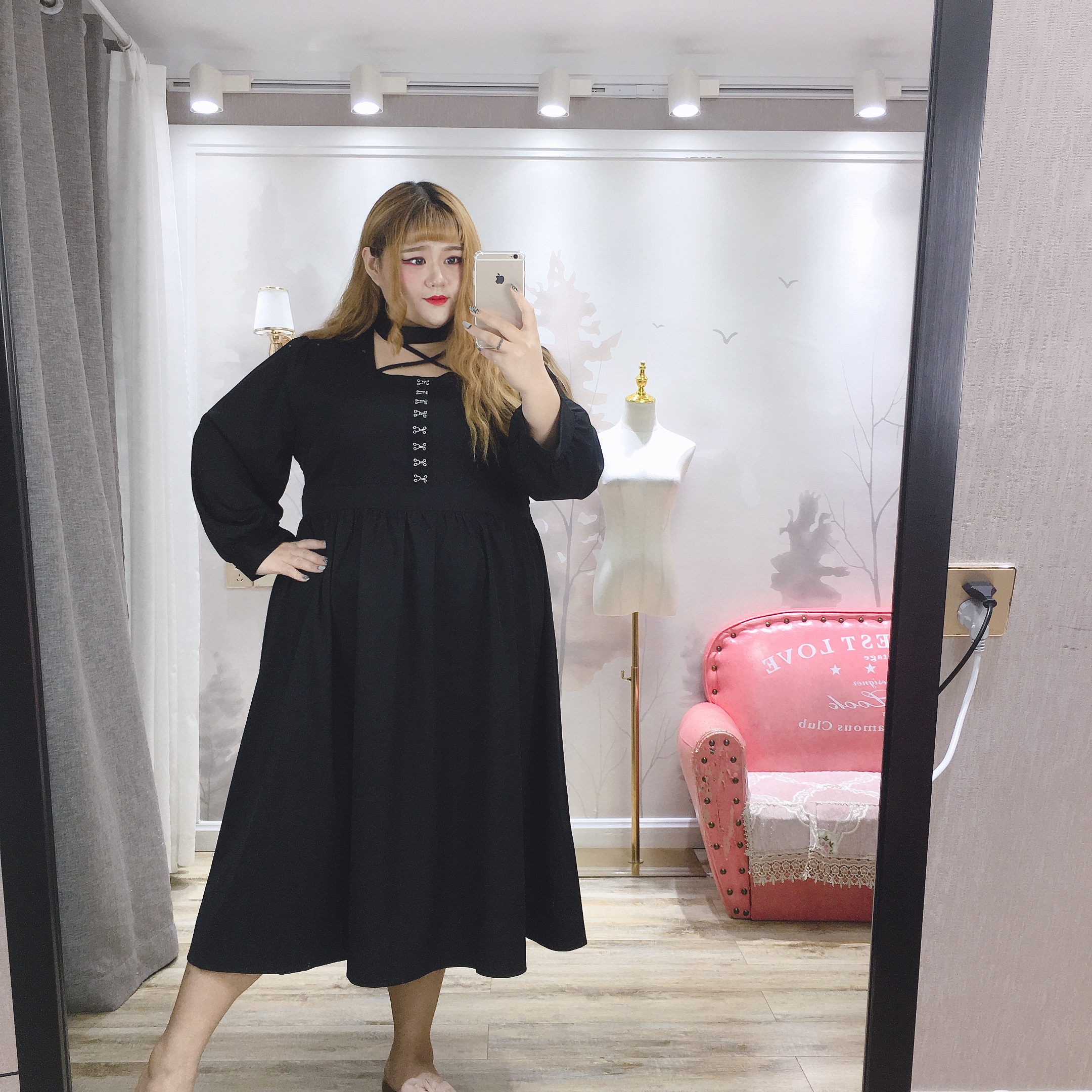 Fat fairy Yingying Ying Ying Cover Fat Spring Fat MM Han Edition Hepburn Cross Sexy Dark Low Low Skin Dress