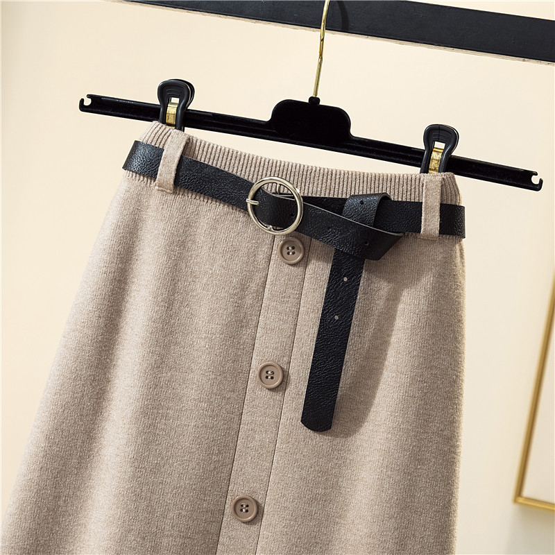 Wool knitted skirt women's medium long version 2021 autumn and winter New High waist slim breasted hip medium long skirt