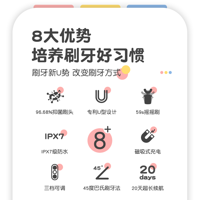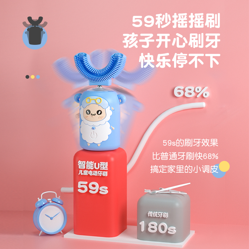 Lazy Beibei children's U-shaped electric toothbrush Baby toddler 2-8 years old Sonic automatic mouth with rechargeable tooth cleaner