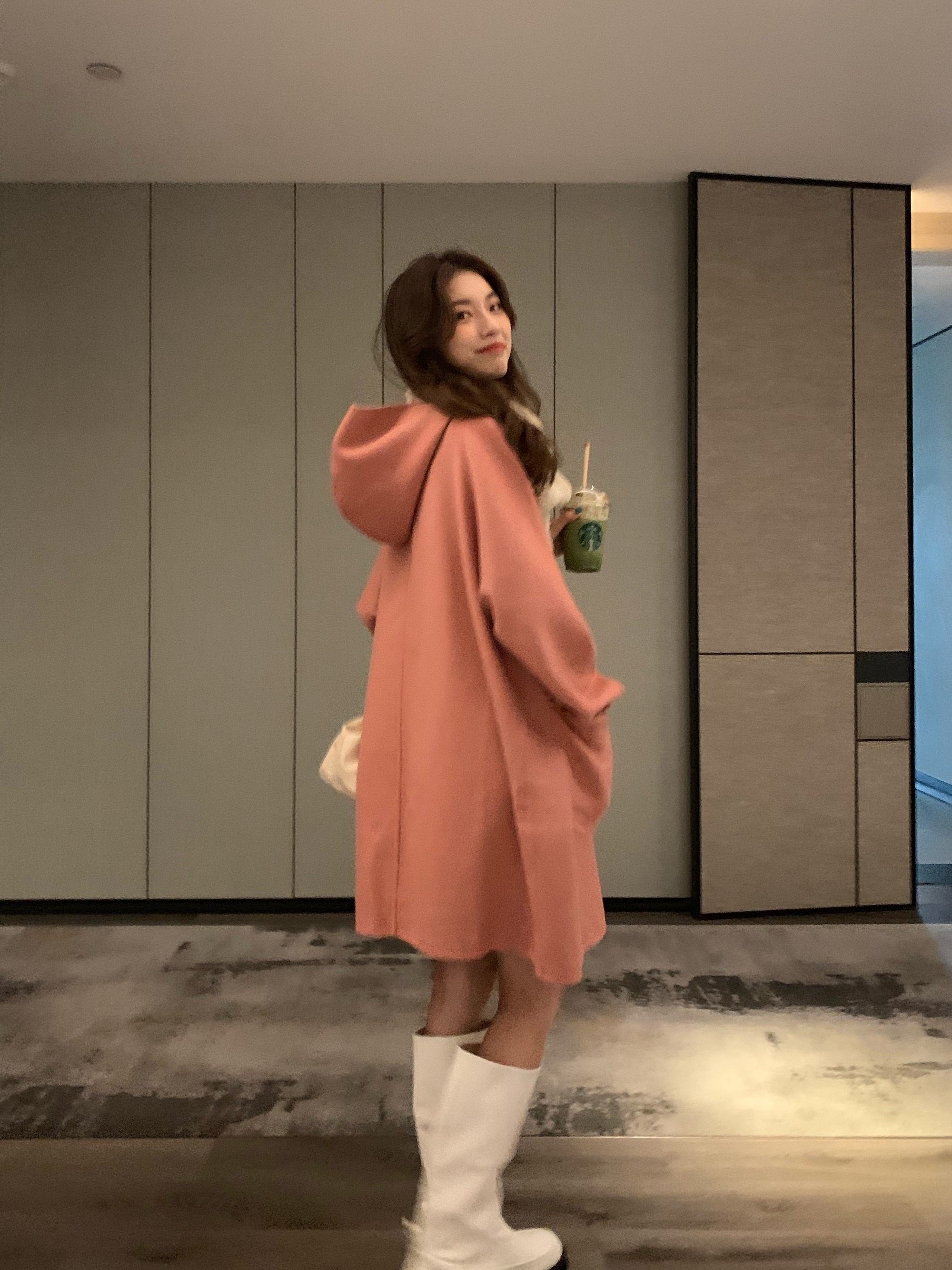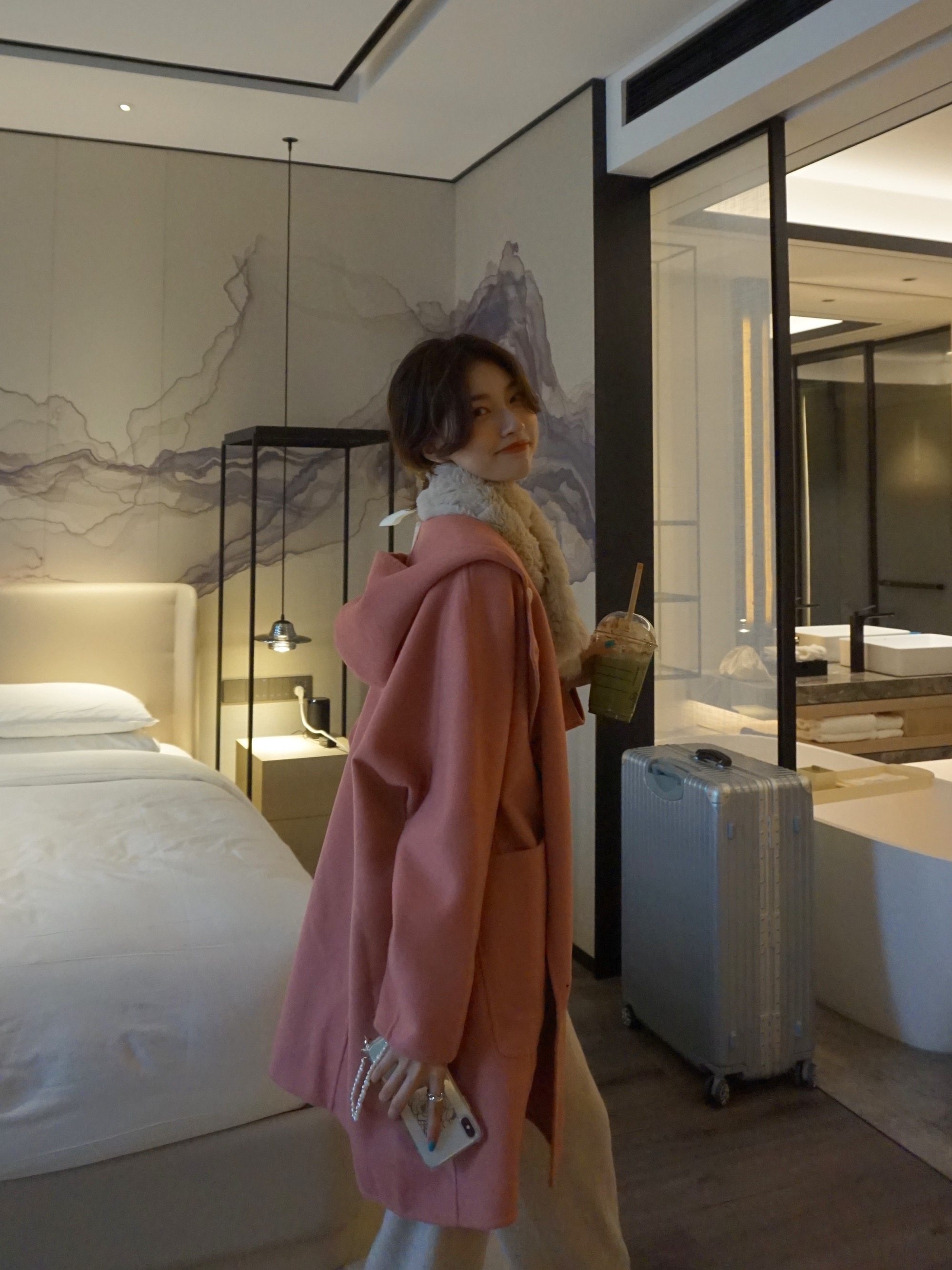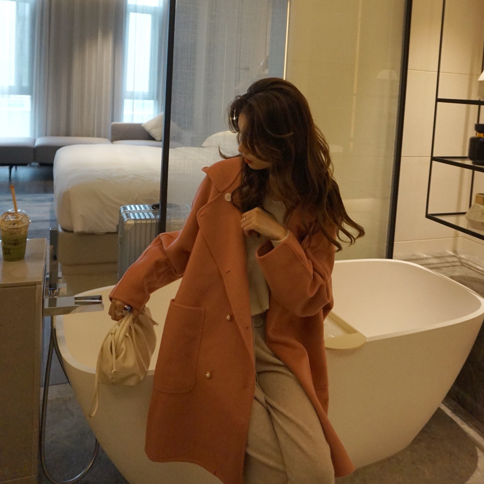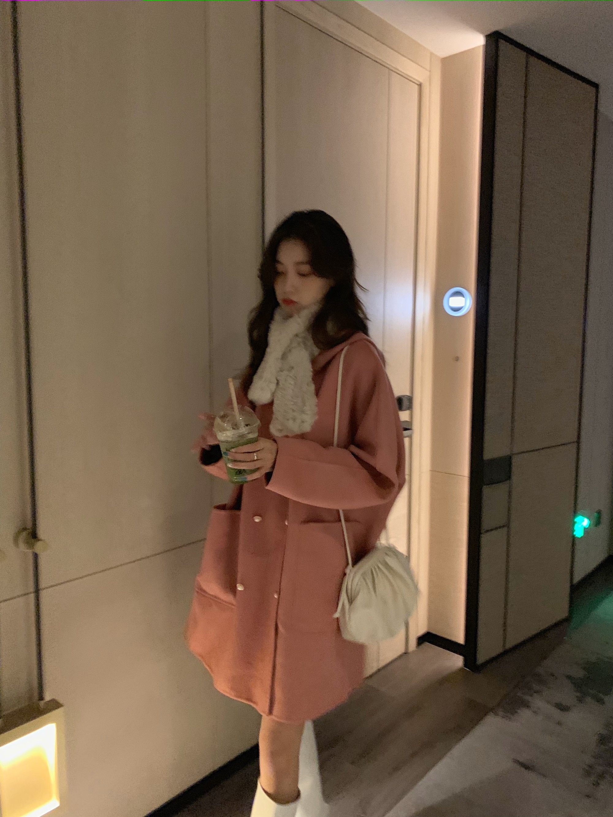 Rice Squad Heartbeat Early Bird Pink Coat 90 Wool Knock Cream Powder Double-sided Ni Coat