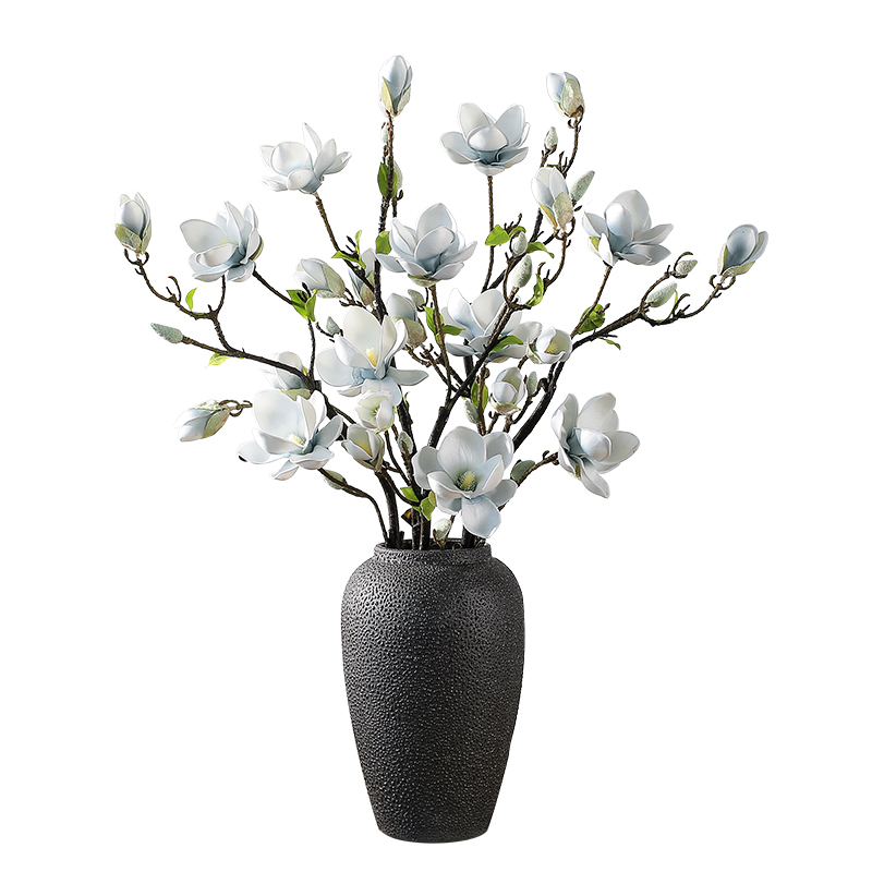 Single pink magnolia, single blue magnolia, single white magnolia, 4 blue imperial magnolias, 5 small pink imperial magnolias on stone countertops, 5 small blue imperial magnolias, Baikal blue medium, 5 blue imperial magnolias