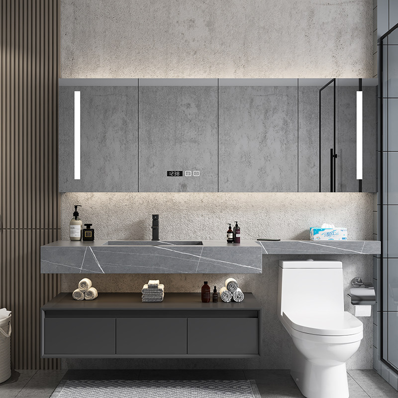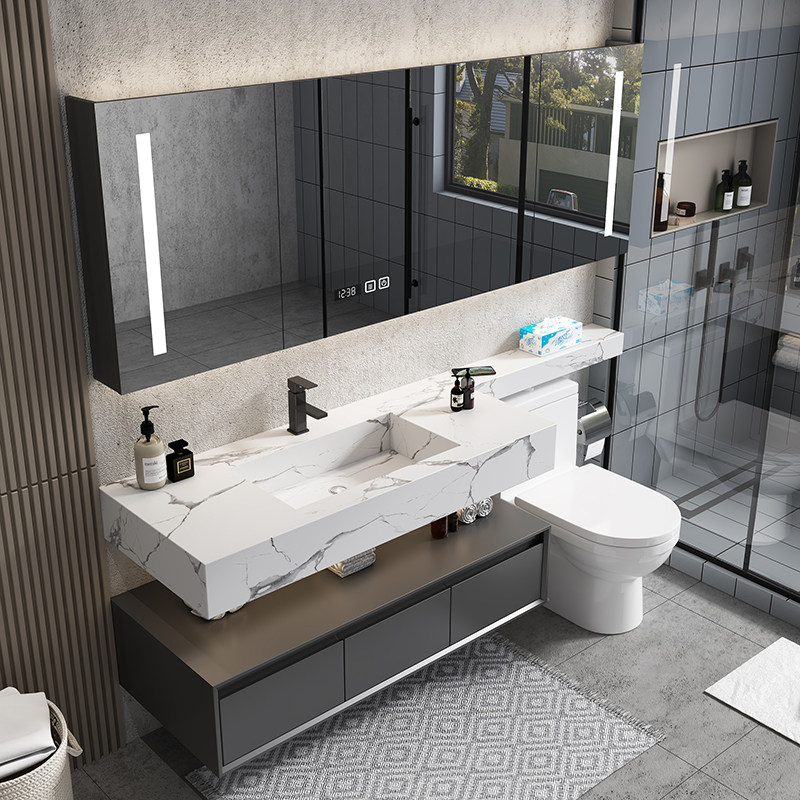 Rock plate integrated basin Smart mirror cabinet combination Rock plate countertop Ceramic basin smart mirror cabinet combination individual custom mirror cabinet