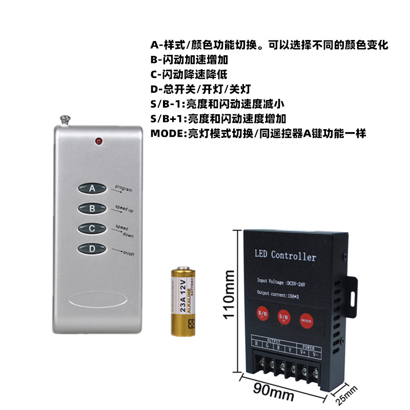 5V light strip LED dimmer RGB color light strip lighting remote control adjustment switch 12V10A three-way light adjuster