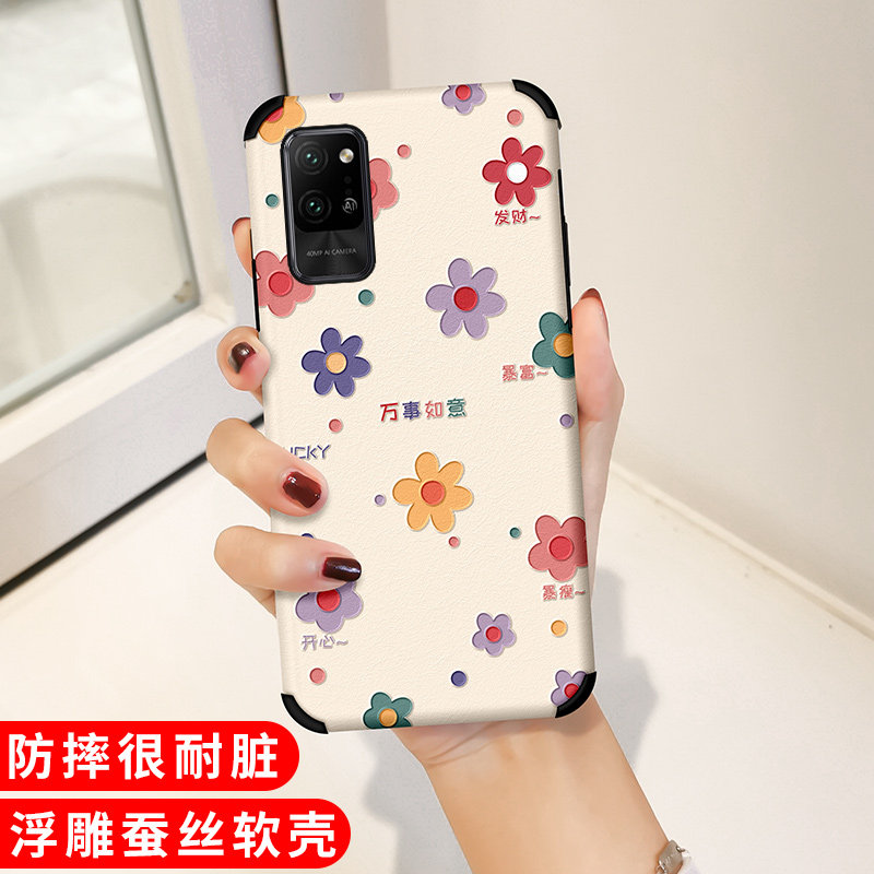 Suitable for Huawei glory play4T mobile phone protective shell female play5T cute play4 protective cover play3 wish flower silk pattern play4Pro anti-fall Pr