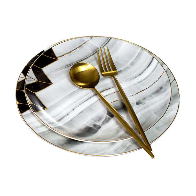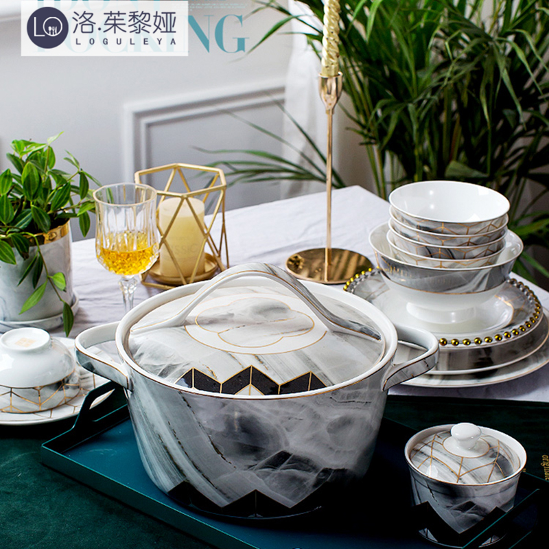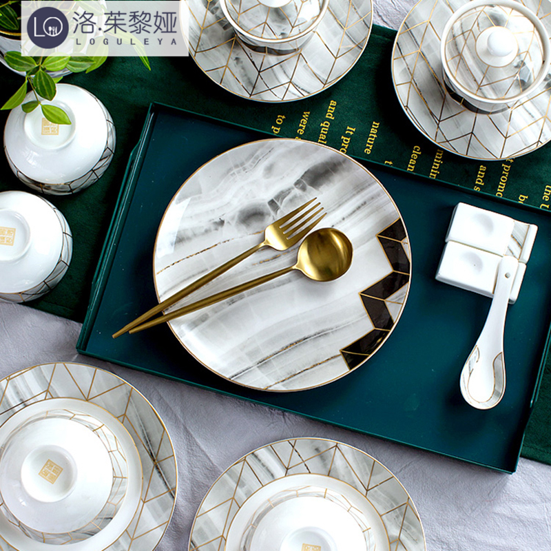 LO GULEYA Jingdezhen Nordic light luxury marble dish set home tableware bone china plate eating bowl