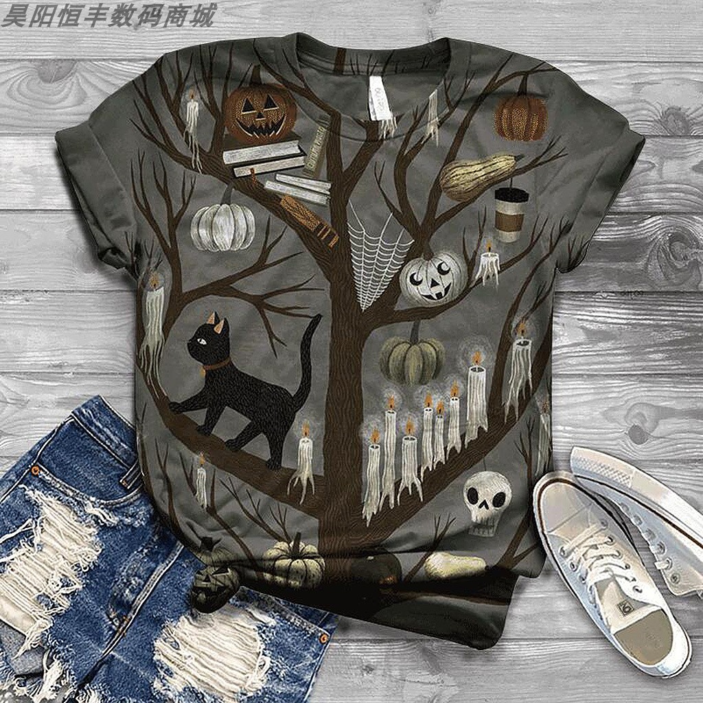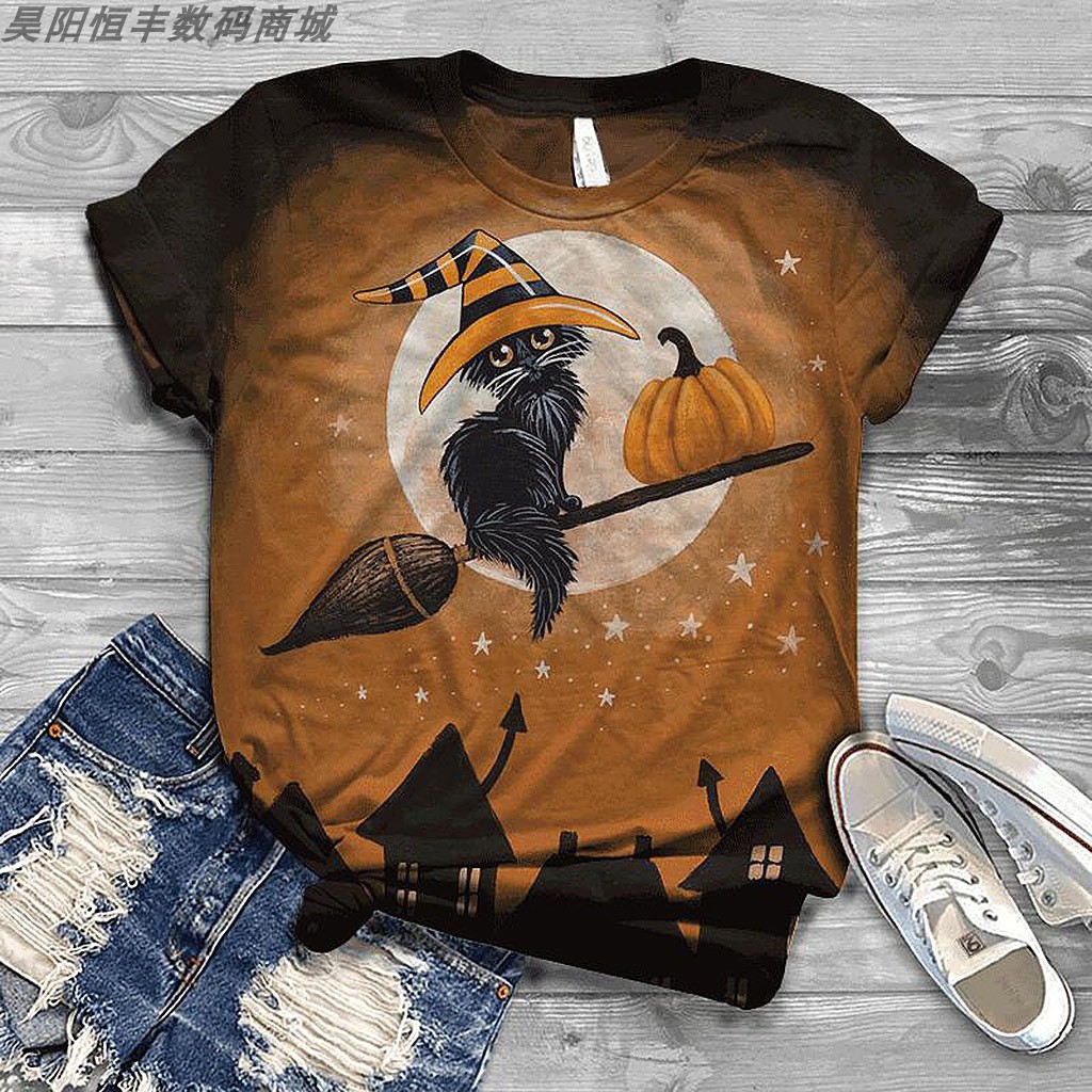 Womens autumn Halloween cat pumpkin T-shirt Blouse top