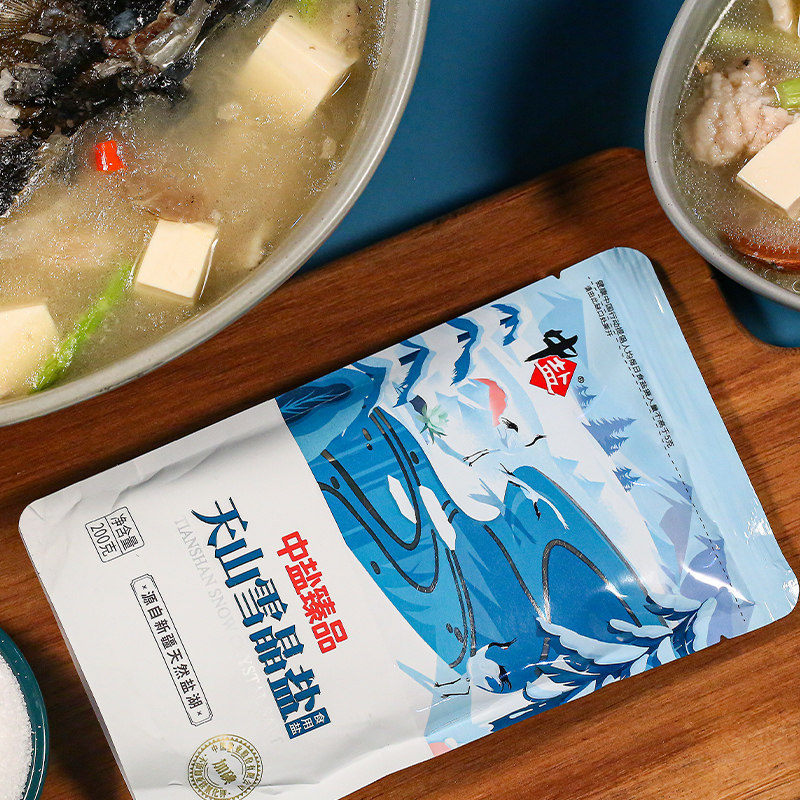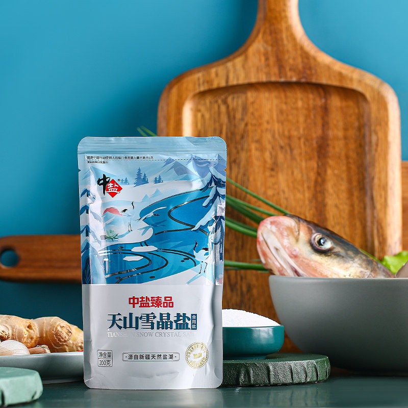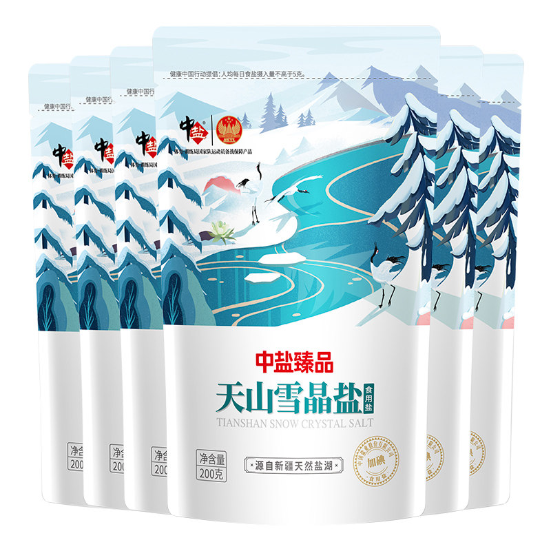 Medium Salt Iodized Lake Salt Tianshan Snow Crystal Salt 200g * 6 Domestic edible salt originated from Xinjiang Tianshan with iodine salt
