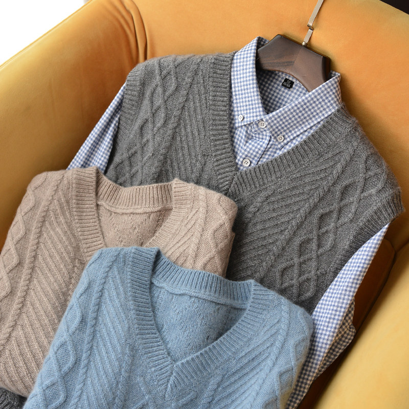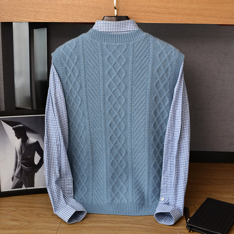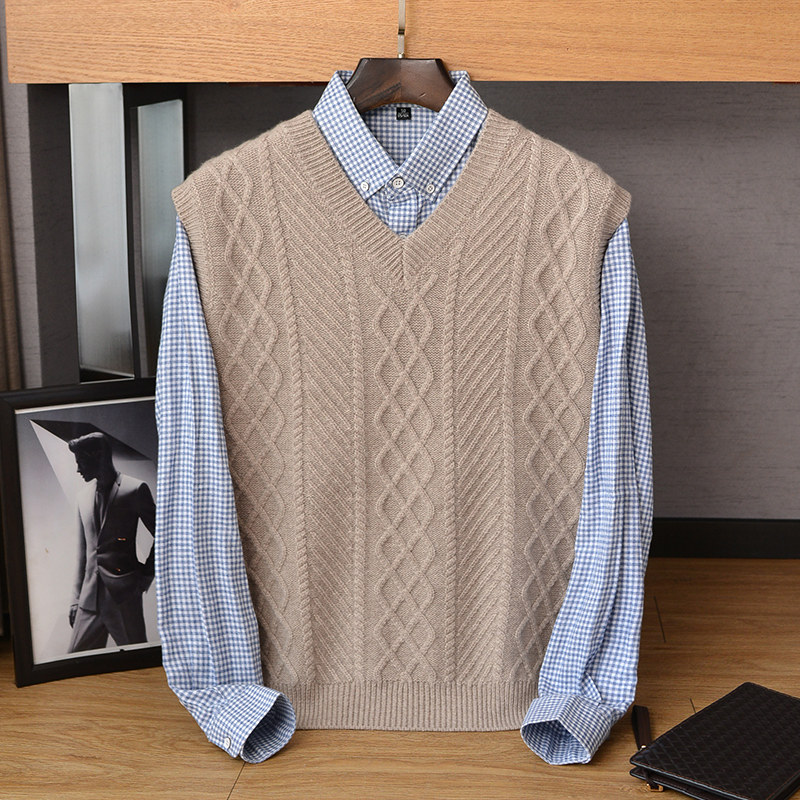 2022 autumn and winter new 100% cashmere vest men's heavy thickened V-neck sleeveless knitted sweater pure cashmere vest