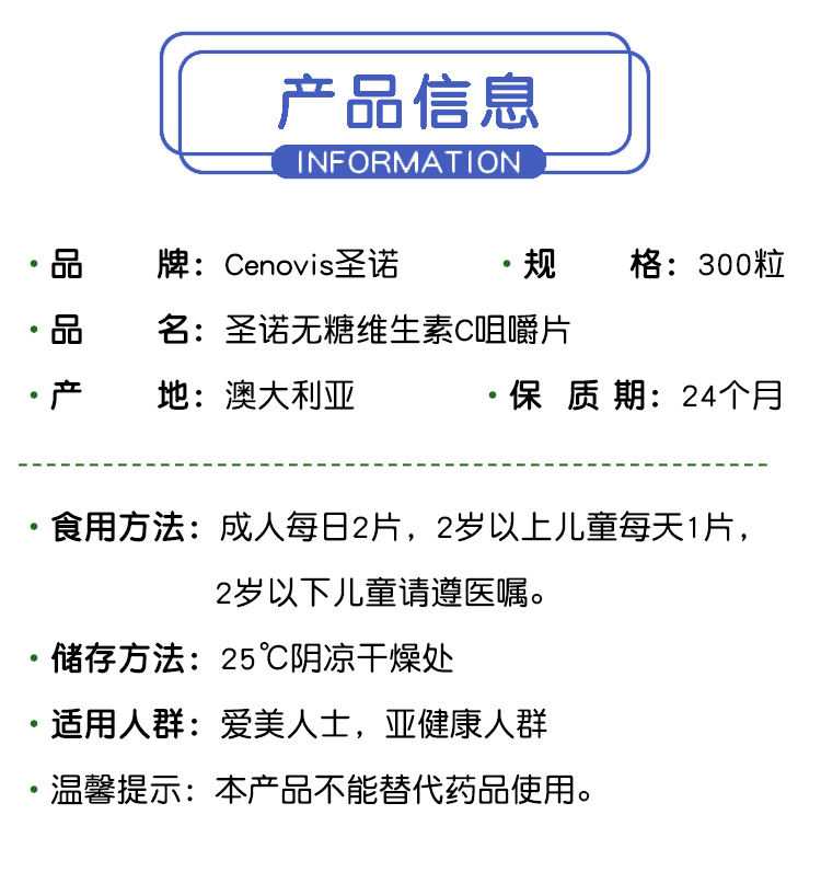 Australia San Nuo cenovis Natural Vitamin C Chewable Tablets vc sugar-free Vitamin C adult children 300 tablets