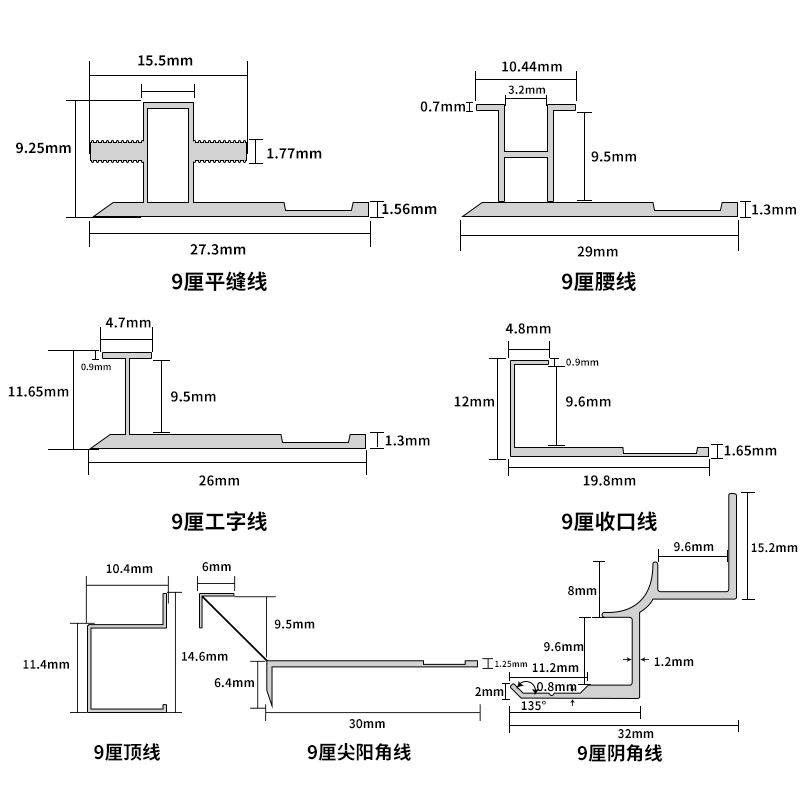 Decorative strip of 9-point aluminum alloy wall panel
