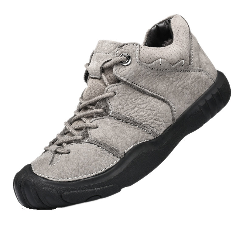 Jeep shield men's leather shoes winter men's outdoor casual shoes soft bottom sports plus velvet warm Zhongbang cotton shoes men