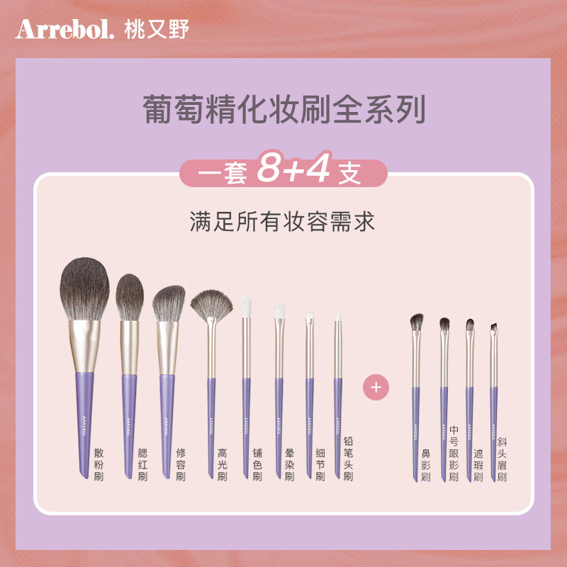 Arrebol Peach and Wild Grape Essence 12pcs 4pcs Makeup Brush Wool Eyeshadow Brush Highlight Repair Brush Tube Combination