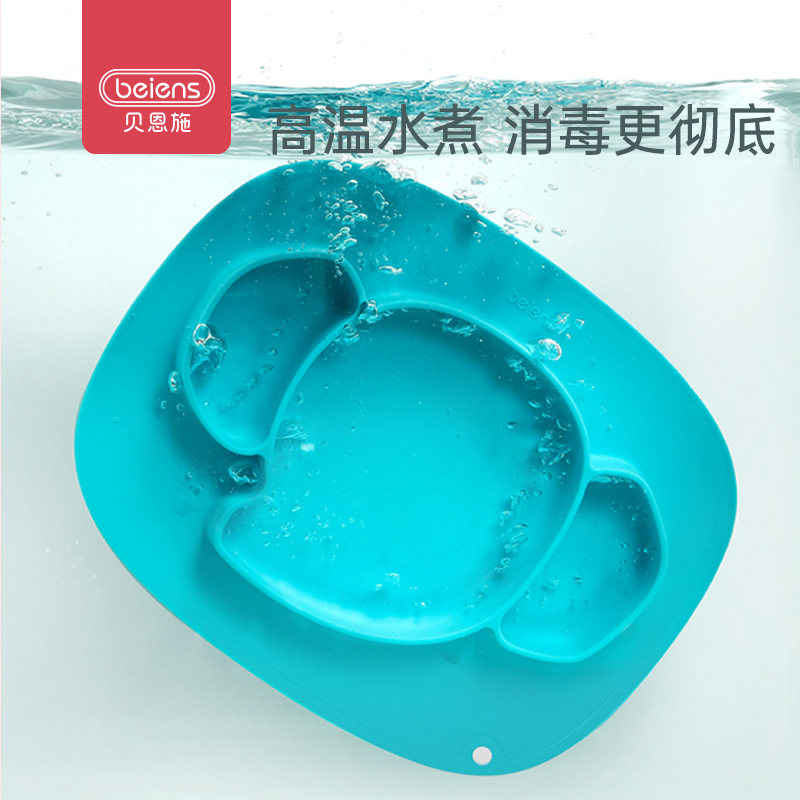 Bain Shi silicone suction cup non-staple food bowl baby children baby learn to eat training tableware plate strong anti-fall one-piece