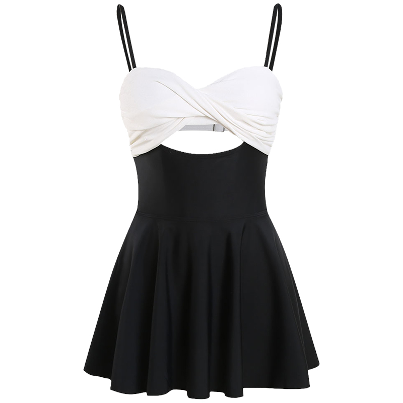 2022 new black and white skirt swimsuit women's hot spring vacation one-piece swimsuit is thin and sexy gathered backless bikini